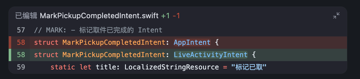 原因是 Live Activity 的按钮需要绑定 LiveActivityIntent 才能被系统执行。原实现使用的是 `AppIntent`,导致按钮点击后不会触发执行逻辑。