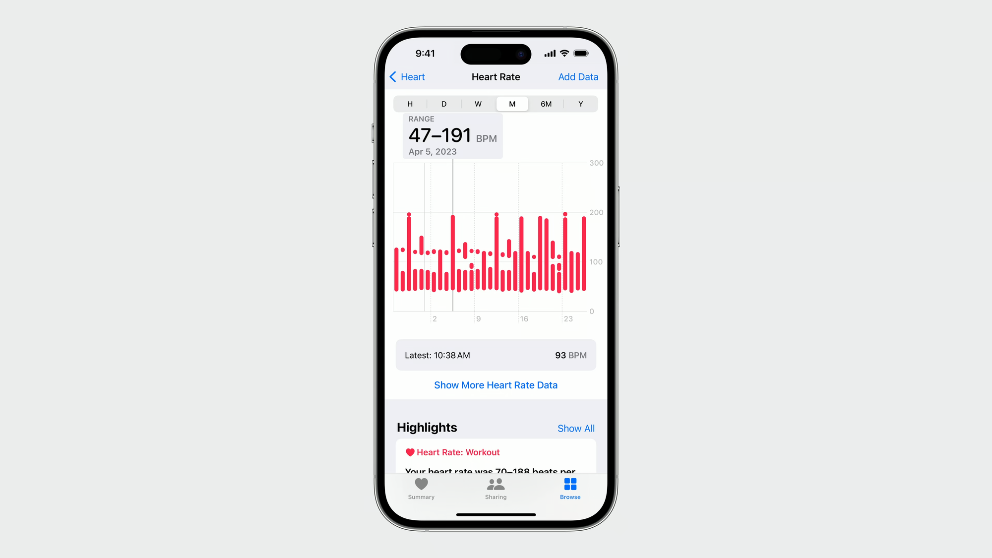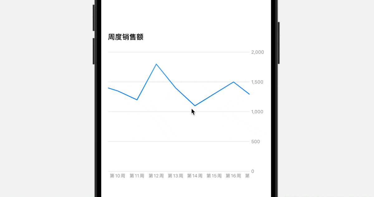 上面这个图表很简洁的,但无法获取到每周具体的销售额。为了让图表功能更加完善,我们可以增加:当用户点击某个数据时,能显示该数据更具体的注释信息,类似 Apple 健康应用中的效果: