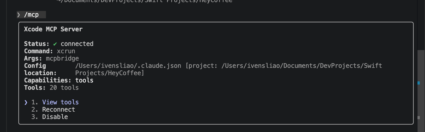 除了在 Xcode 中支持 Agent 模式之外,还有一个隐藏的重磅更新 —— Apple 官方的 Xcode MCP 工具!这意味着我们可以在 Claude Code 中直接通过 MCP 控制 Xcode!