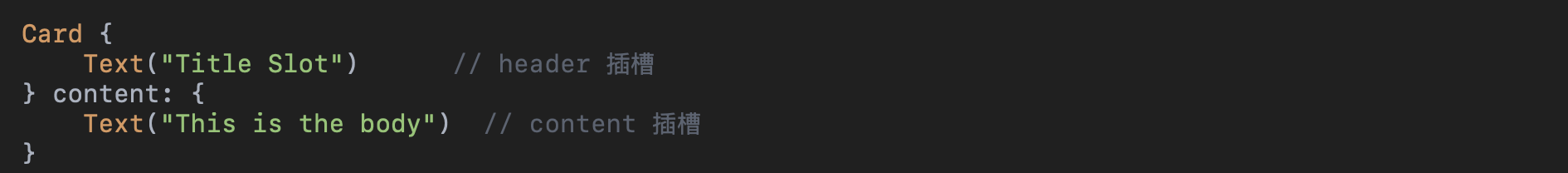 “插槽模式” 指的是你构建一个组件,并通过 ViewBuilder 闭包为它的特定位置(插槽)传入自定义视图内容。这样你就可以灵活复用组件结构,但把具体内容交给调用者定制。