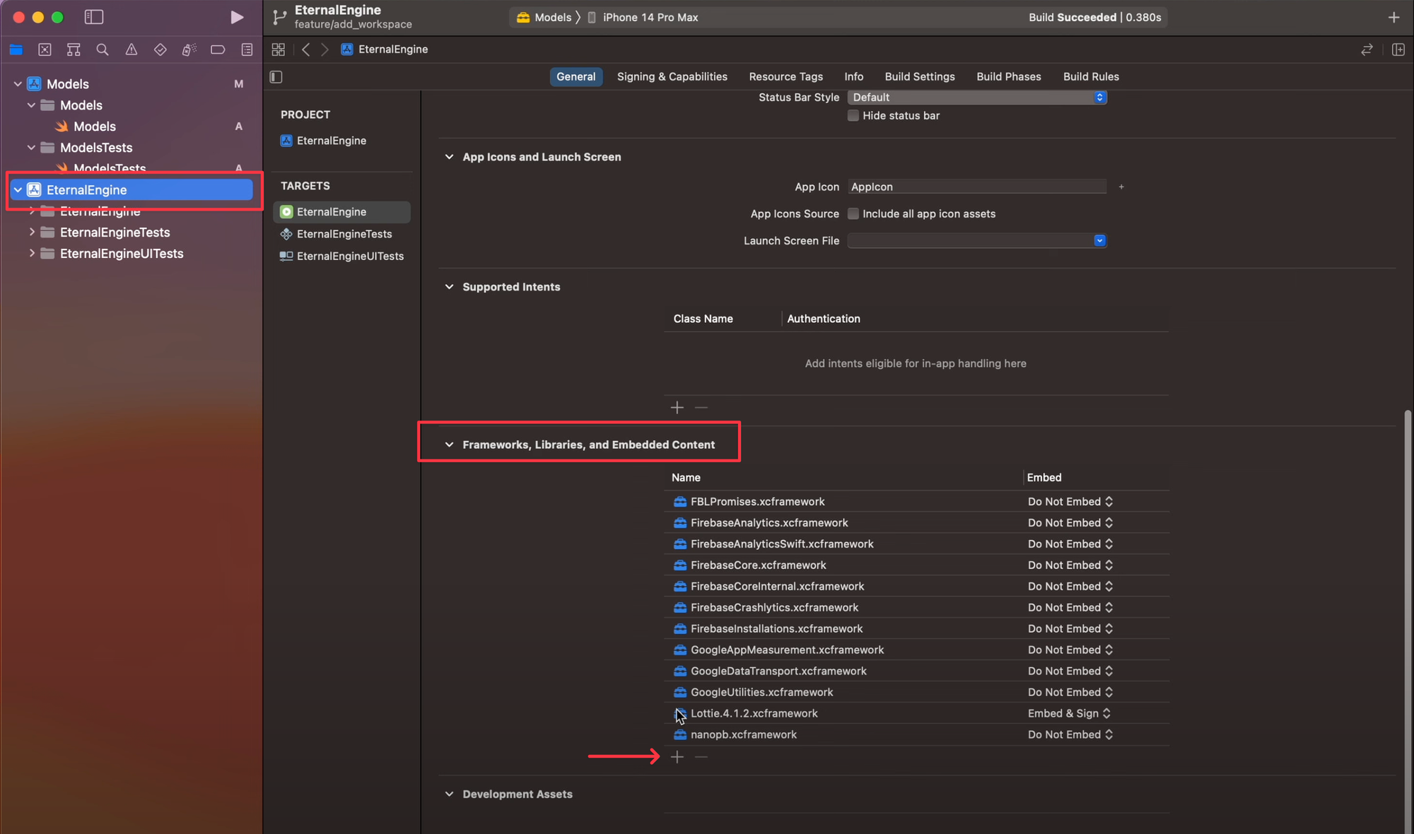 要使用 Framework,必须手动 Embed 到 Project 中。