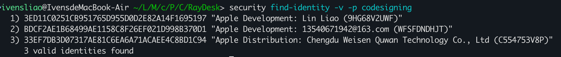 下载新的证书并安装后,使用命令应该可以看到新的 Apple Distribution 证书: