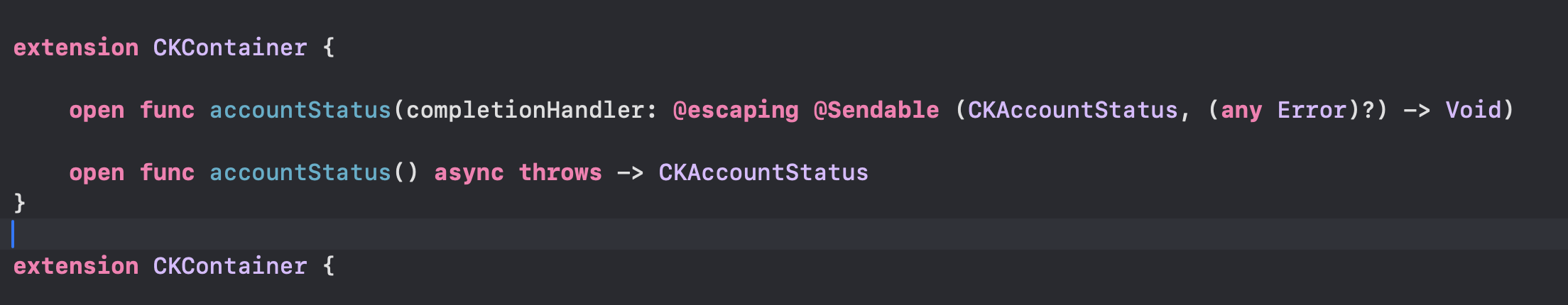 Apple 为 accountStatus() 方法提供了新的 Swift Concurrency 版本: