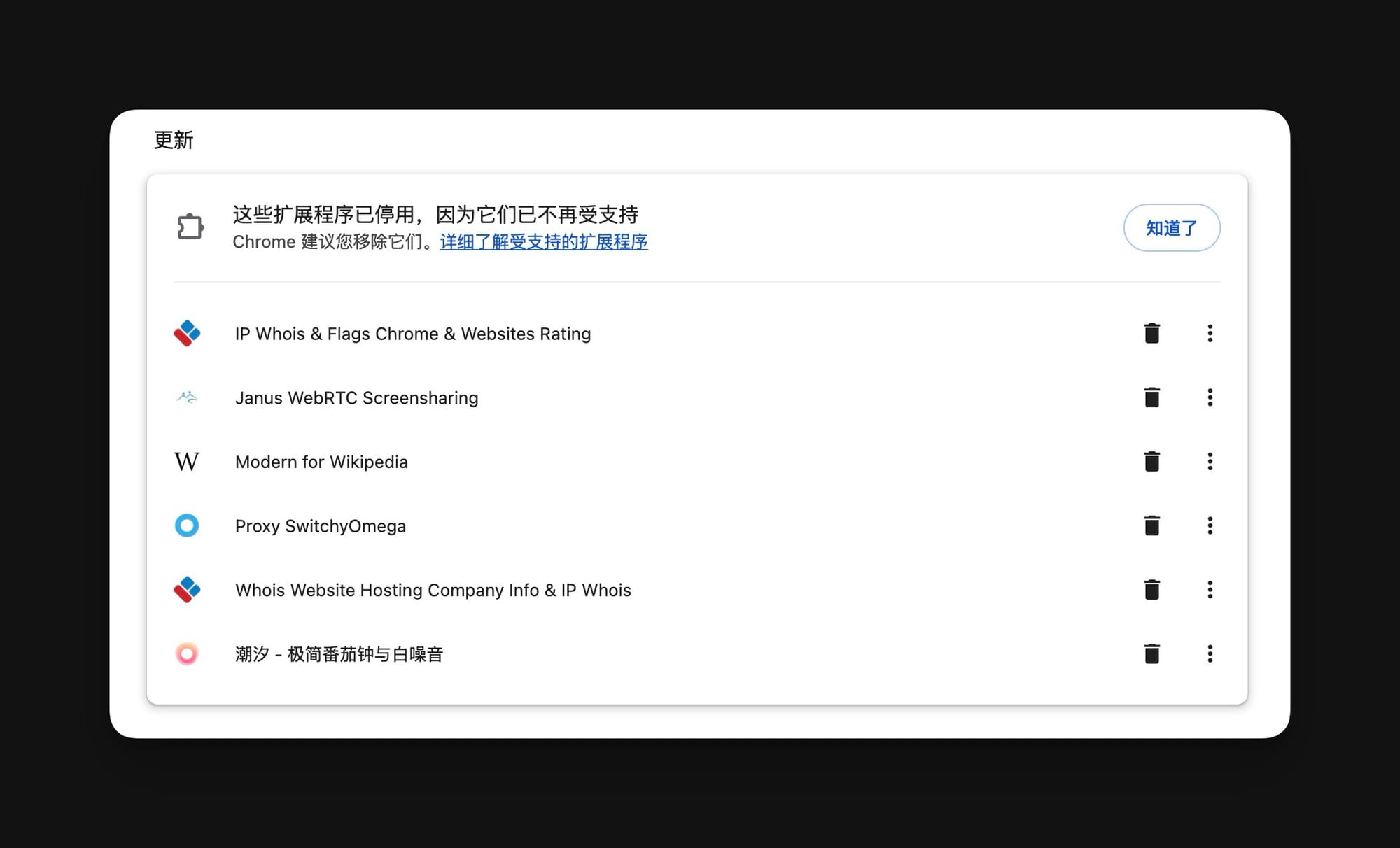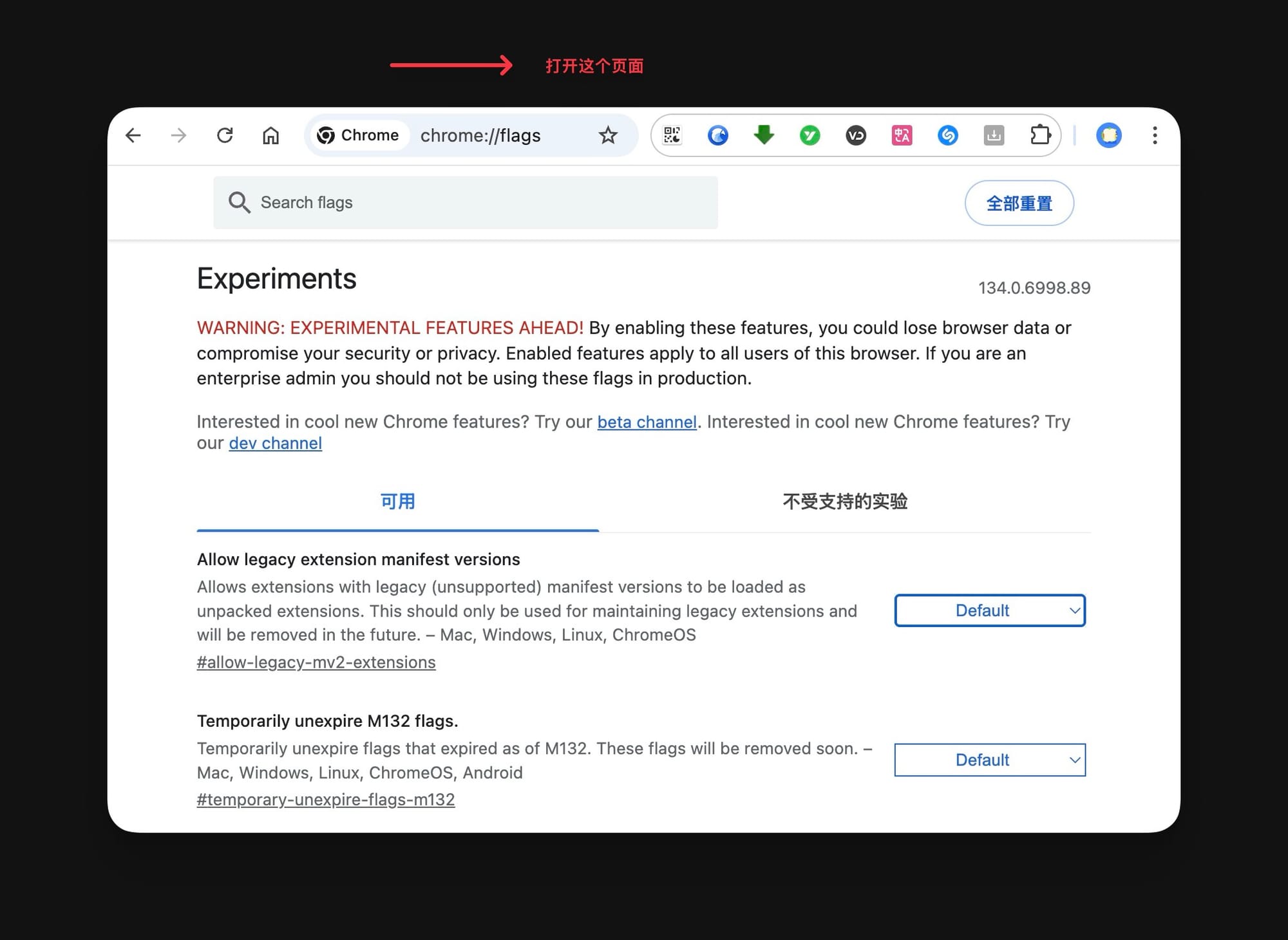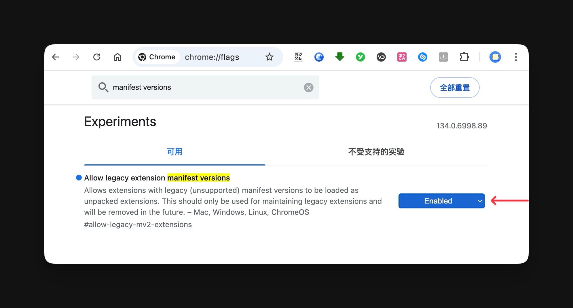 最佳方案当然是更新到支持 V3 的扩展最新版。但如果你的扩展程序早已停止维护,可以通过这个方案在 Chrome 上重新启动用 V2 的支持。