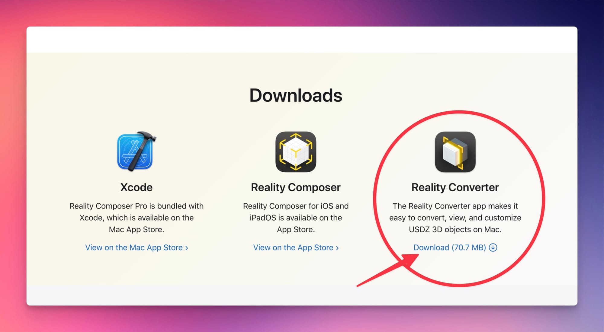 页面往下滑,可以找到 Reality Converter 下载链接: