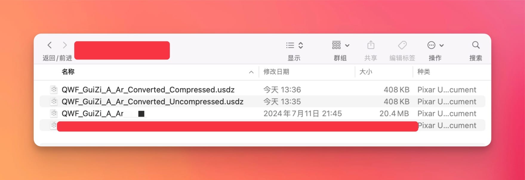 和上面一样,导入模型并检查通过之后,你可以直接导出为 .usdz 格式的文件。导出后的 .usdz 格式文件大小应该会明显减小。