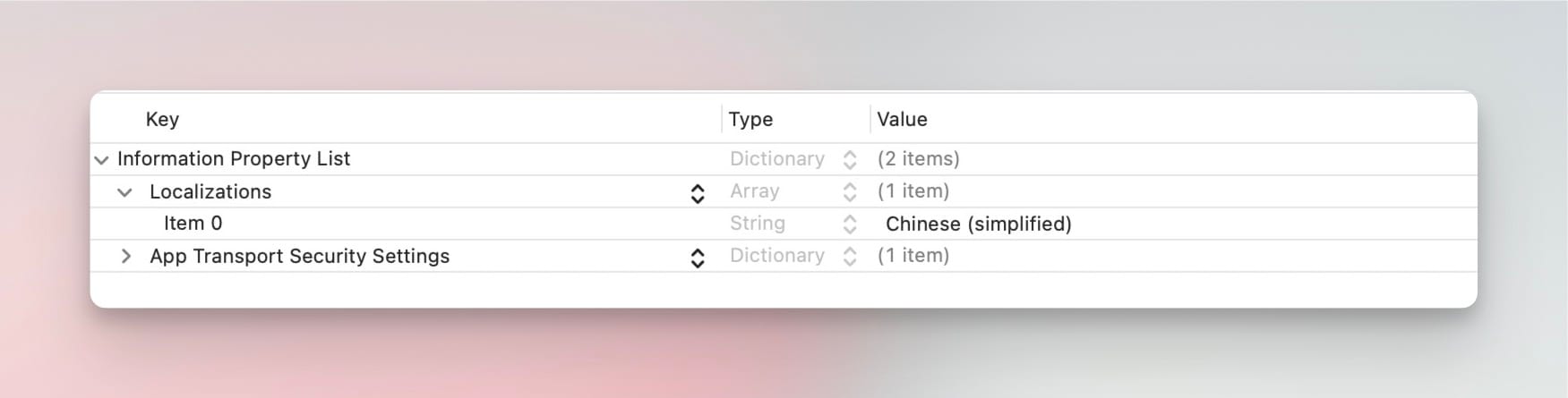 - 在 Xcode 中,选择项目文件 -> “Info” -> “Localizations”,并确保选择了 Chinese (Simplified) 或 Chinese (Traditional)。