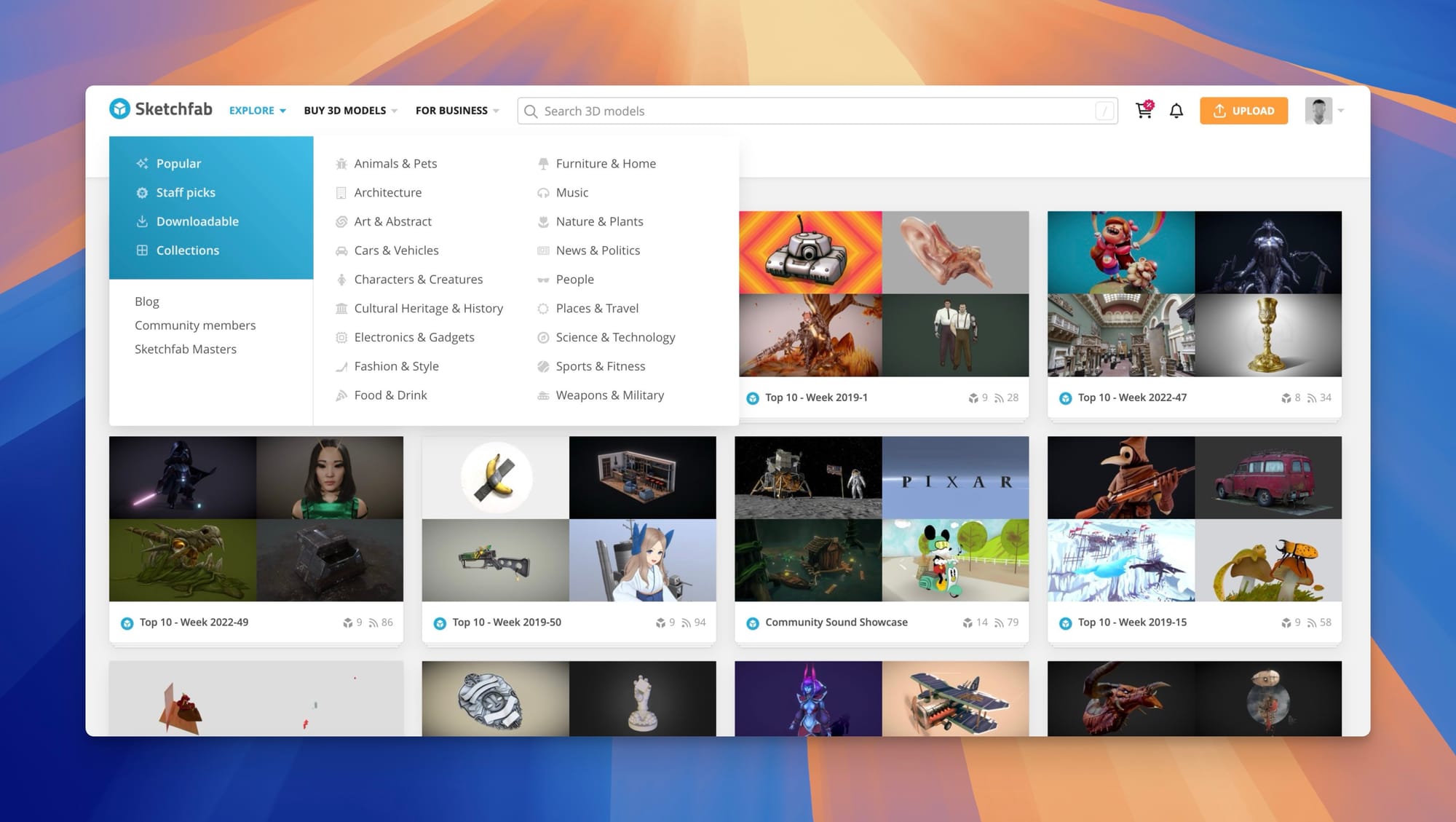 Sketchfab 是一个 3D 模型分享平台,提供大量免费的 USDZ 模型资源。