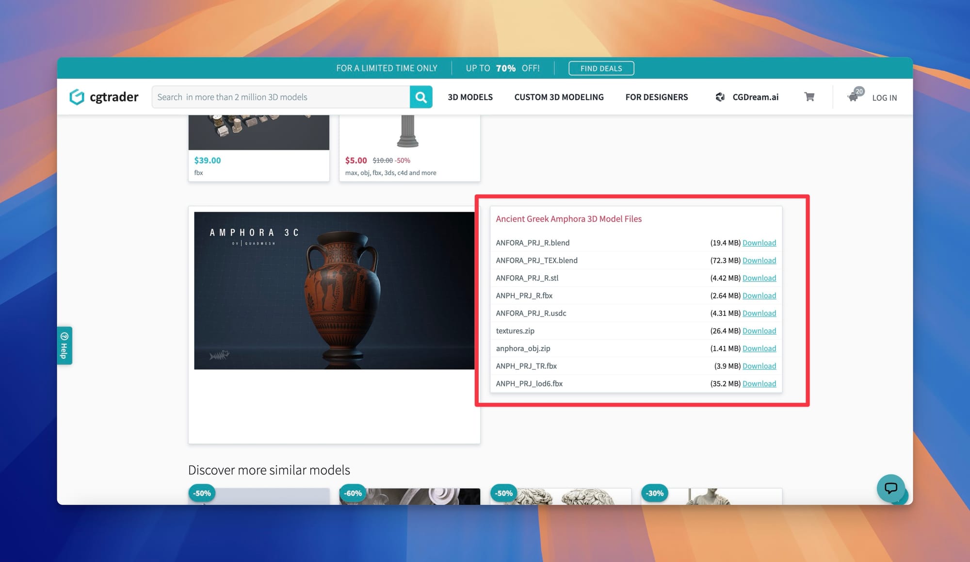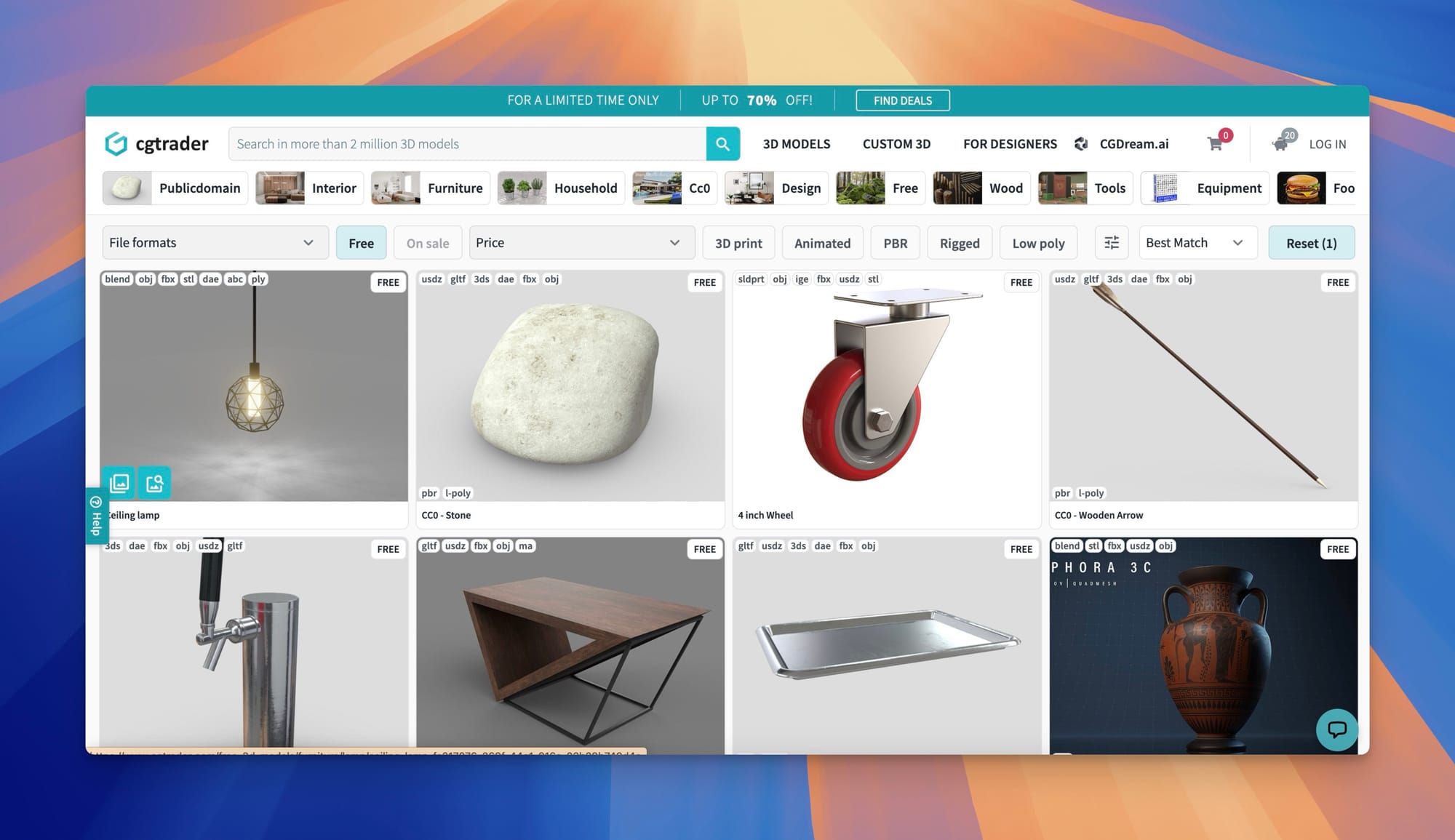 CGTrader 是一个大型 3D 模型市场,提供免费和付费的高质量 3D 模型,包括 USDZ 格式。