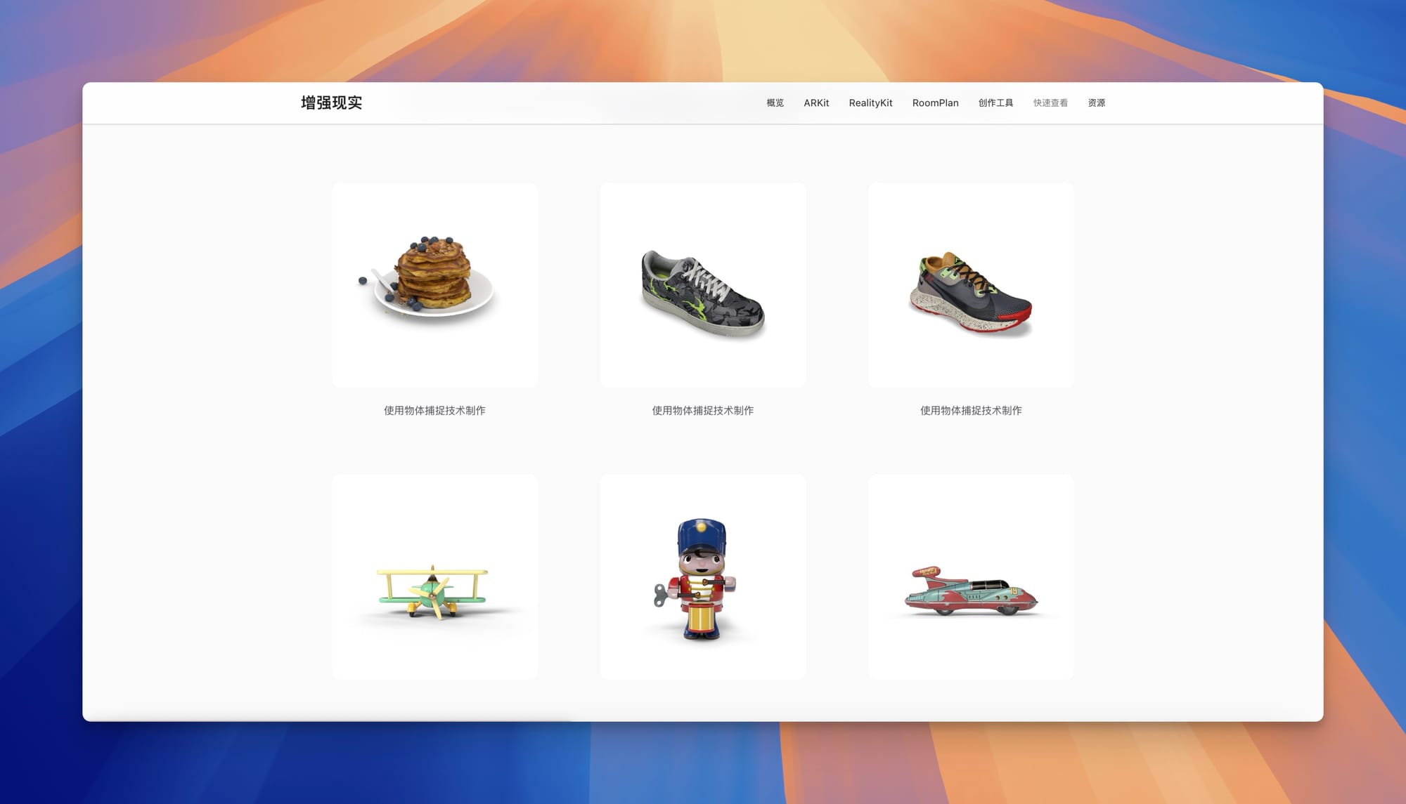 苹果在自己官网上,提供了一些演示 3D 模型,虽然数量不多,但若作为开发演示素材使用仍然是不错的选择。
