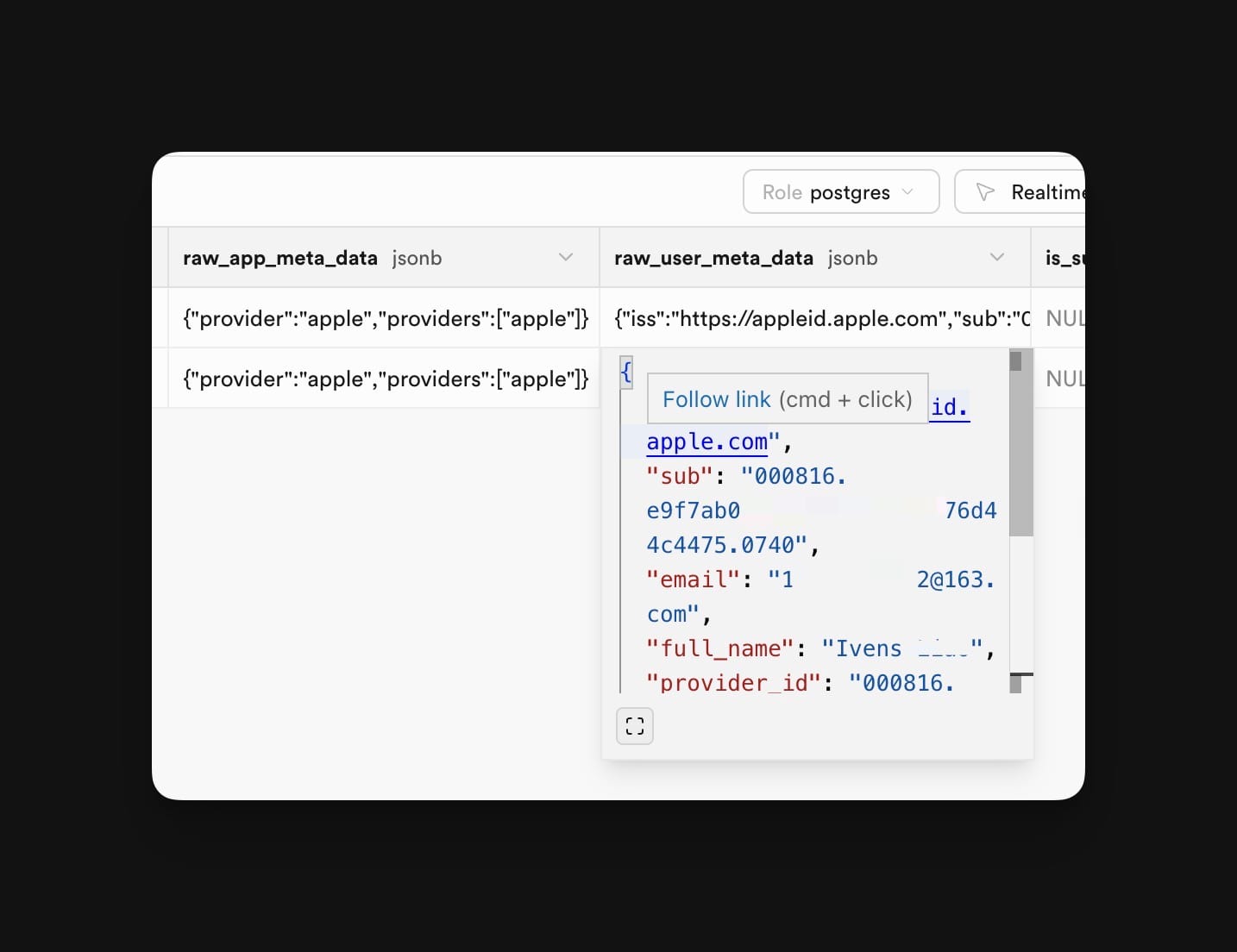 Apple 提供的 identity token 仅用于 Supabase 的初始化验证,验证通过之后,后续的身份认证令牌,都是用 Supabase 自己的令牌。