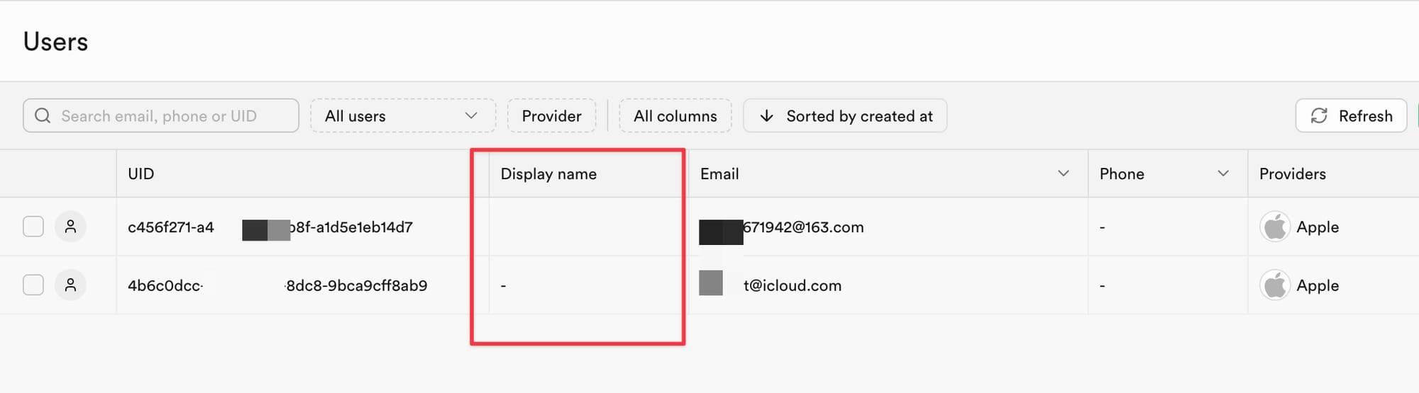 在使用 signInWithIdToken() 方法完成 Sign in with Apple 认证之后,在 User 表中可以正确获取并存储 Email,但是无法自动获取并存储用户名。
