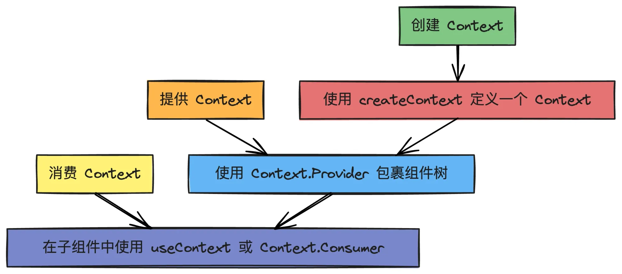 };通过这种方式,Context API 允许我们在不显式传递 props 的情况下在不同组件之间共享状态,大大简化了复杂应用中的状态管理。