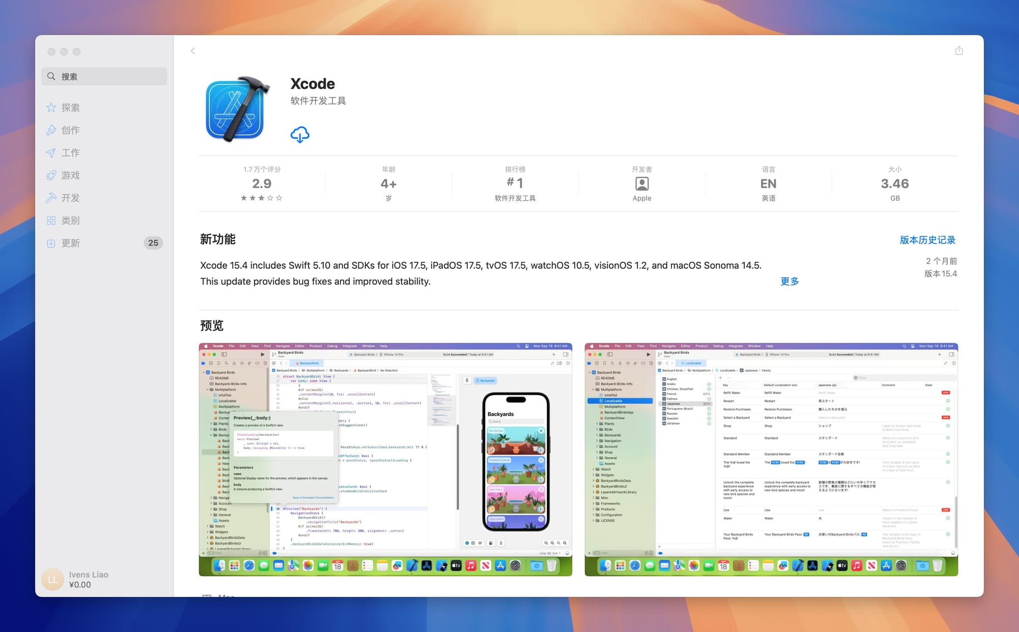 安装方式:可以直接在 App Store 中搜索 Xcode,免费下载安装即可。