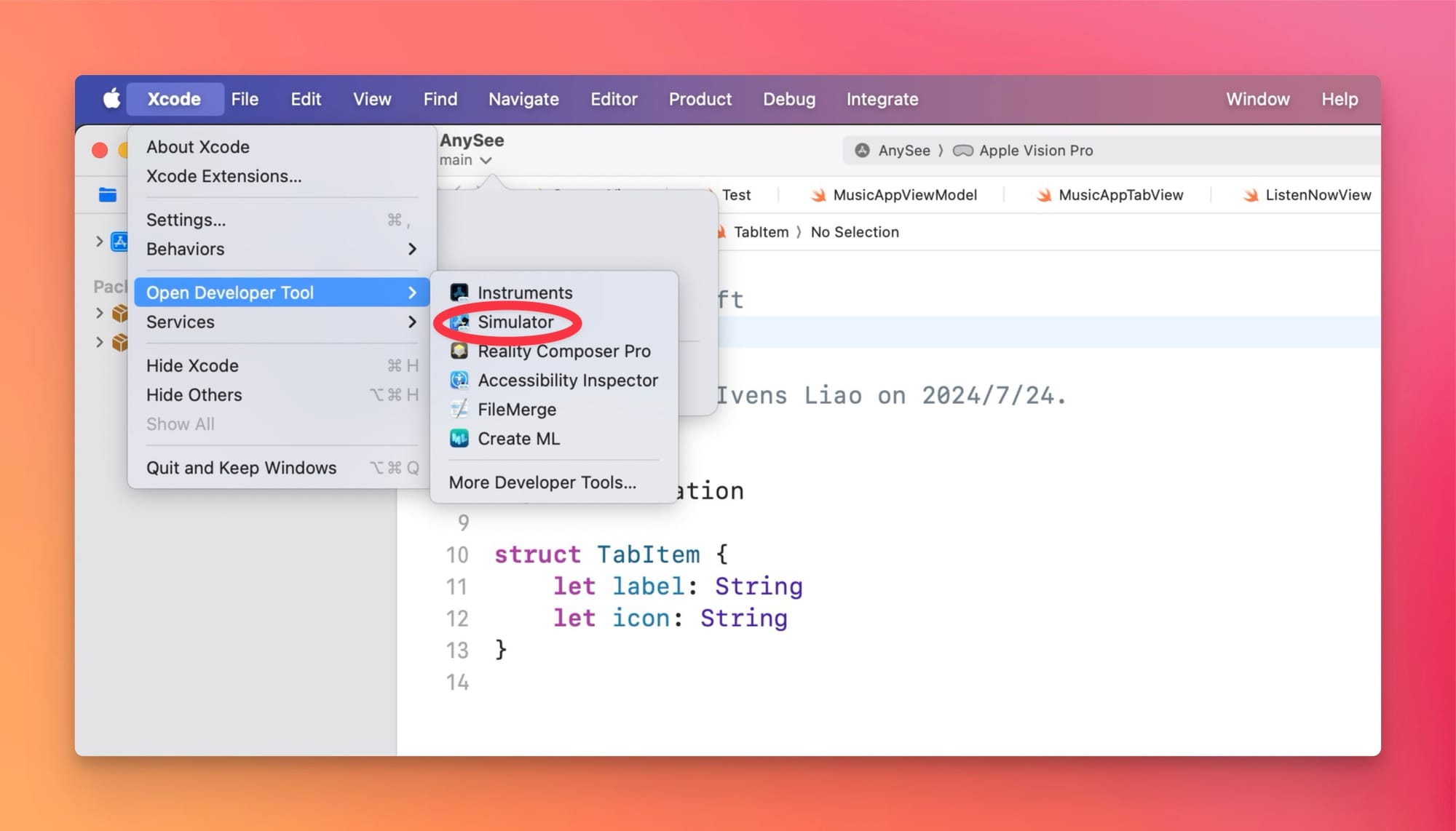 Simulator 是 Xcode 的一部分,允许开发者在不同的 Apple 设备环境中测试他们的应用。对于 visionOS,Simulator 提供了模拟 AR 和 VR 环境的功能,使开发者能够在真实设备之前测试和优化他们的应用。