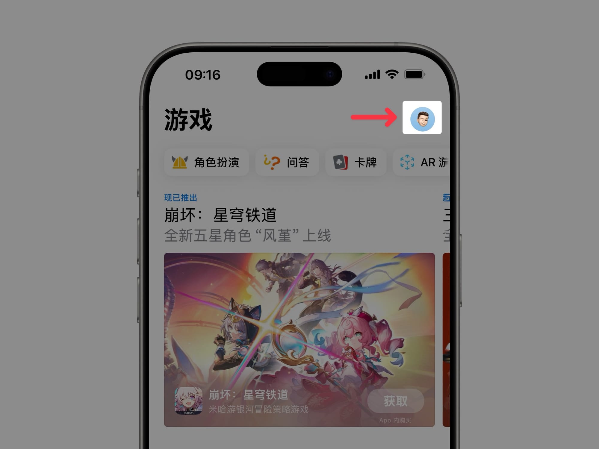 打开 AppStore 应用商店,然后点击右上角的头像: