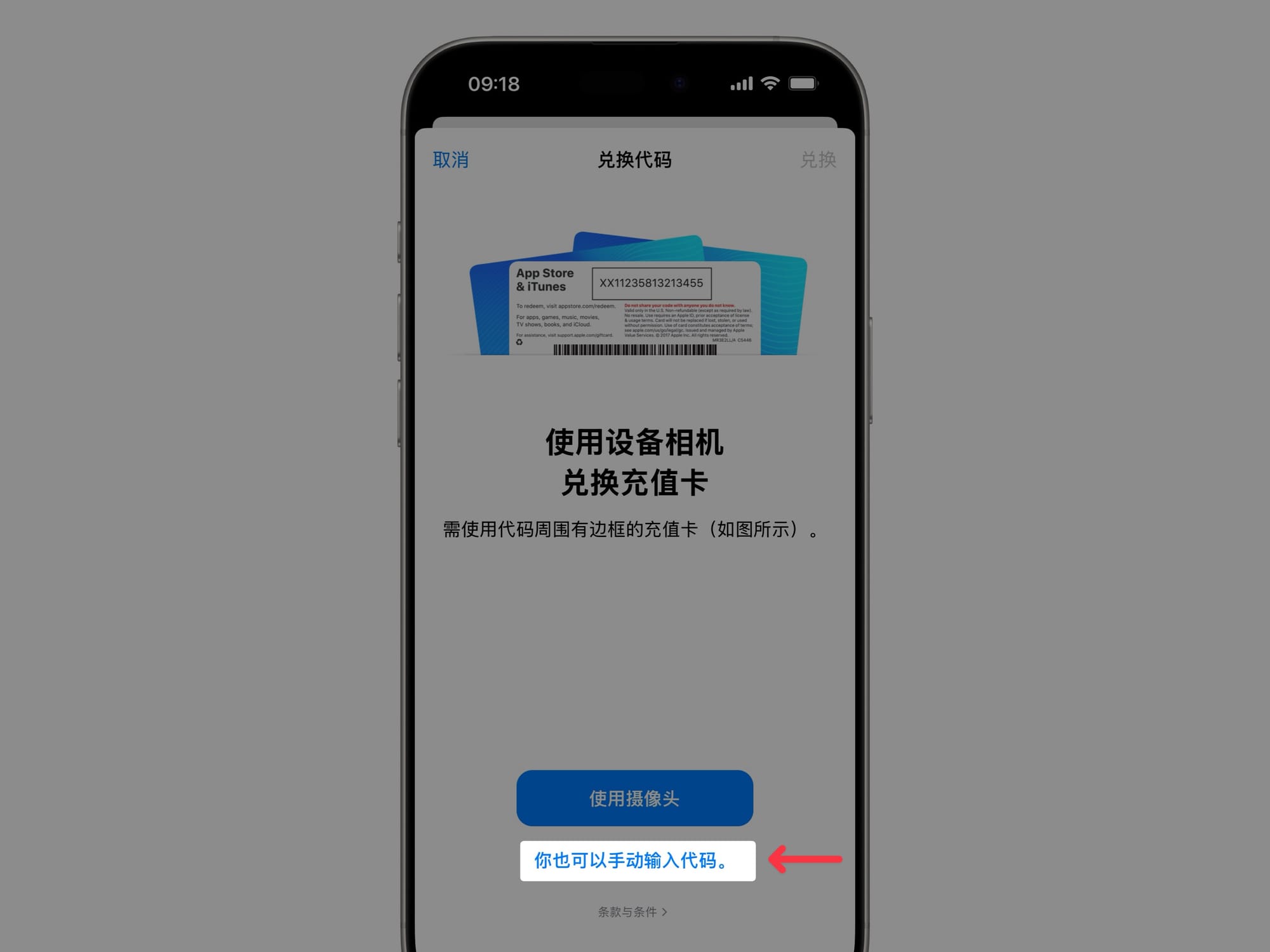 然后点击「兑换充值卡或代码」: