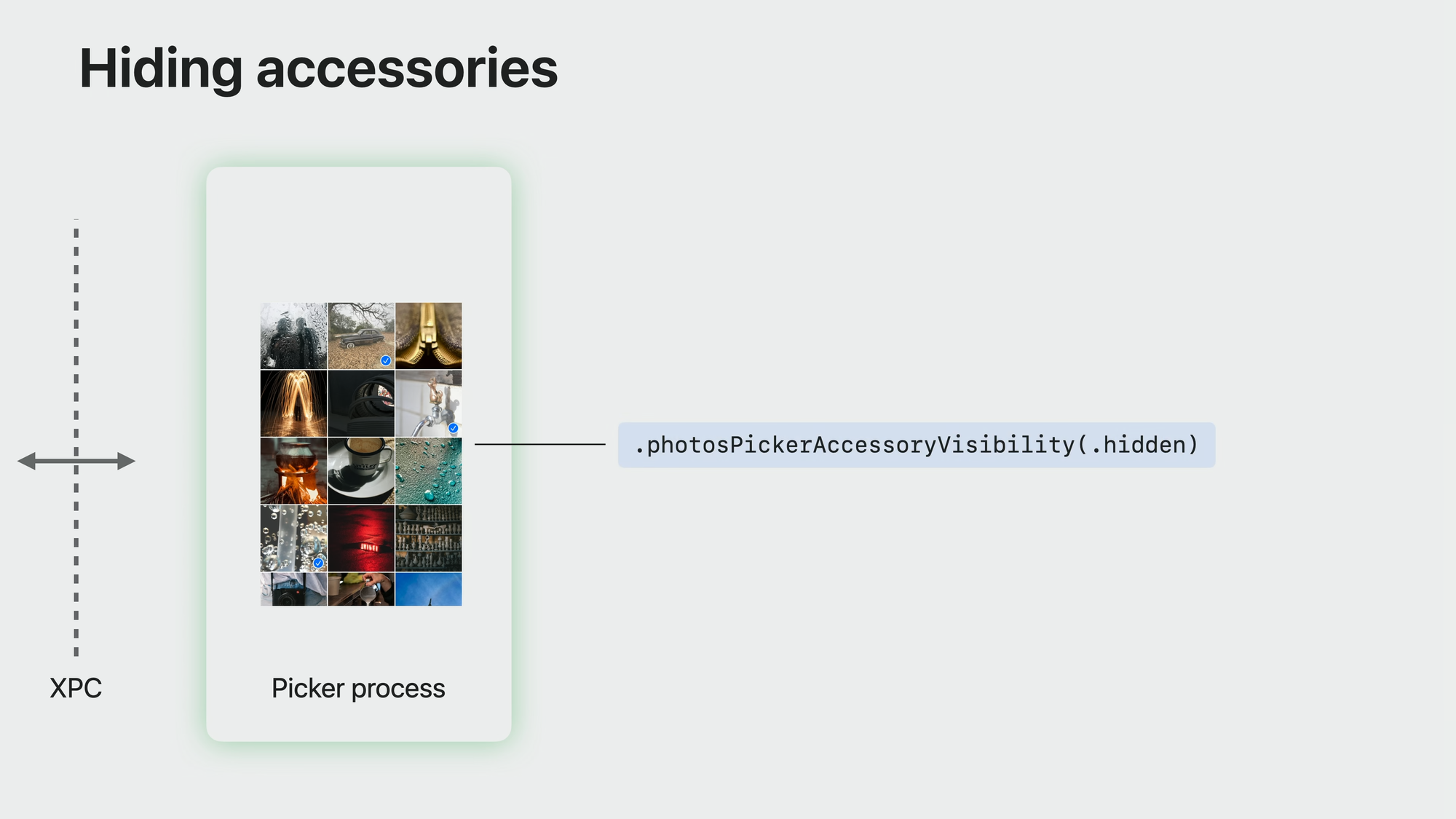 使用 .photosPickerAccessoryVisibiity 隐藏所有元素