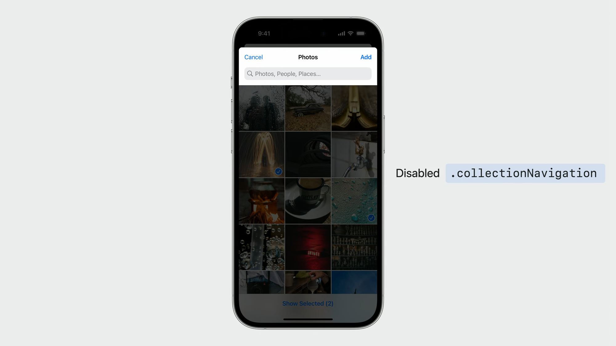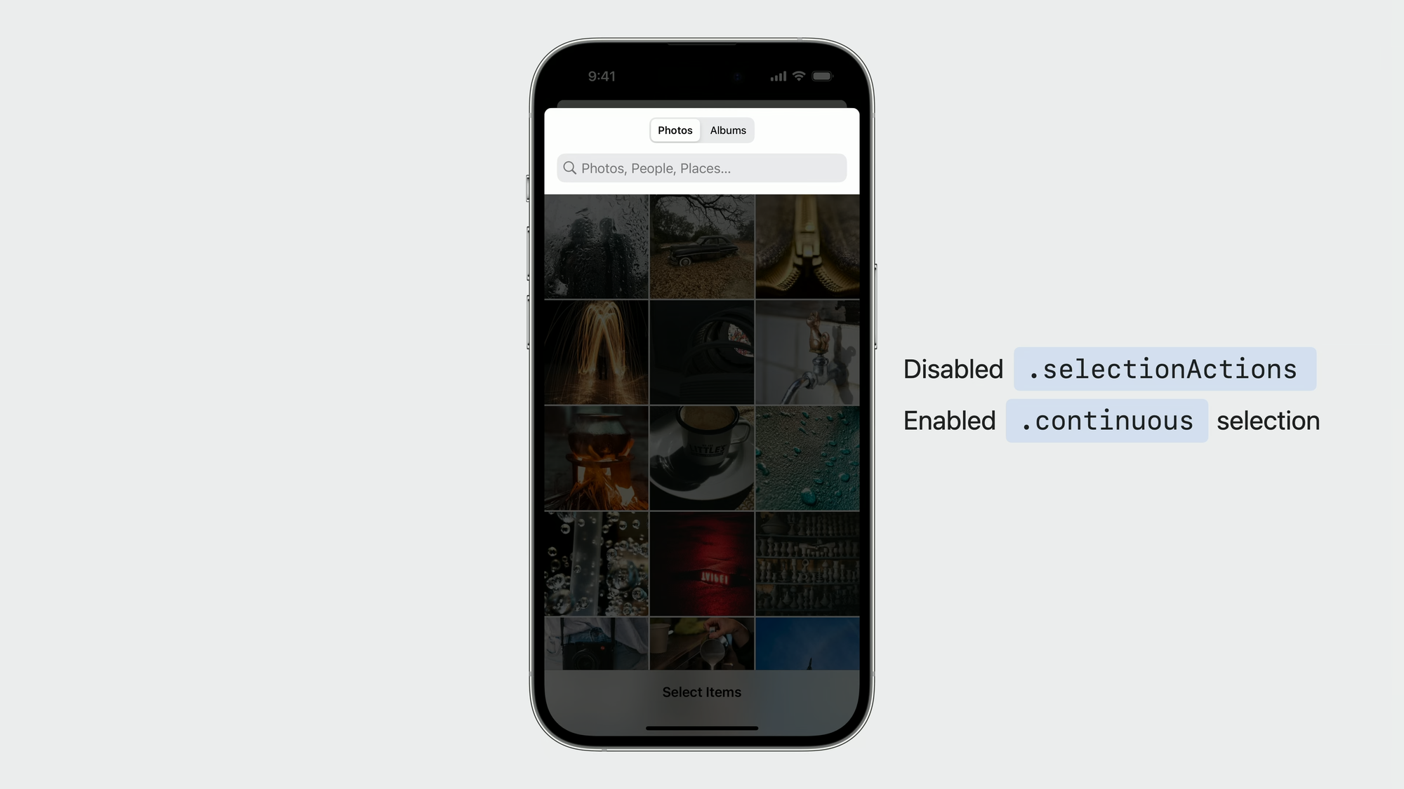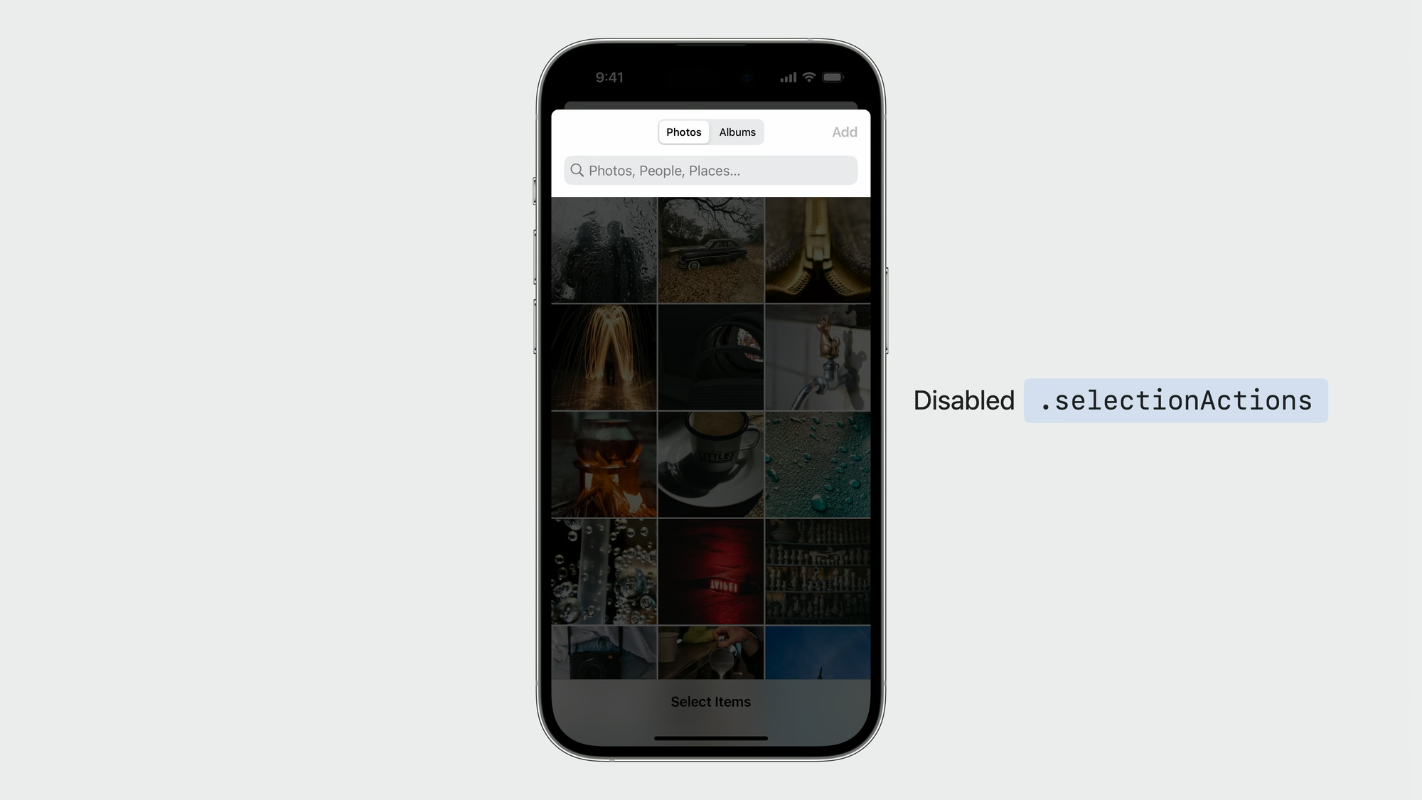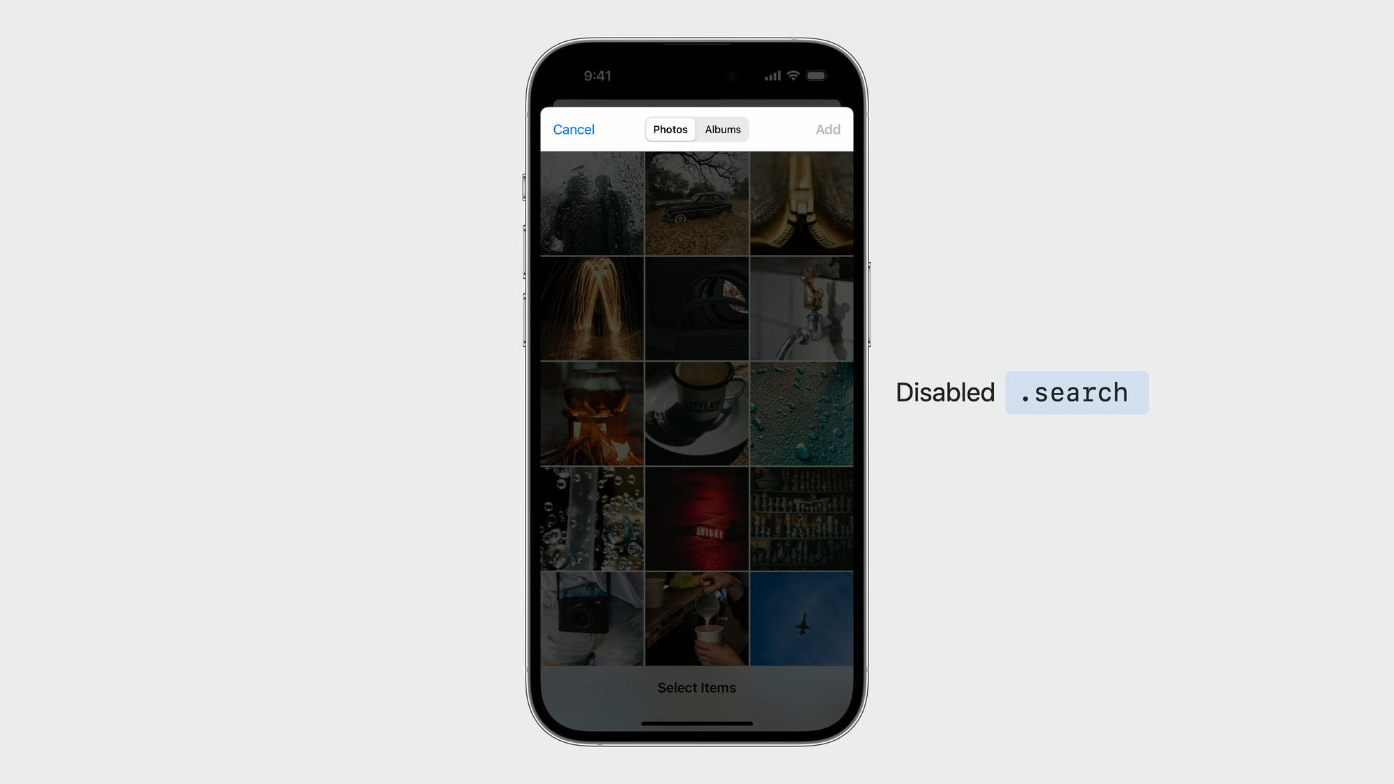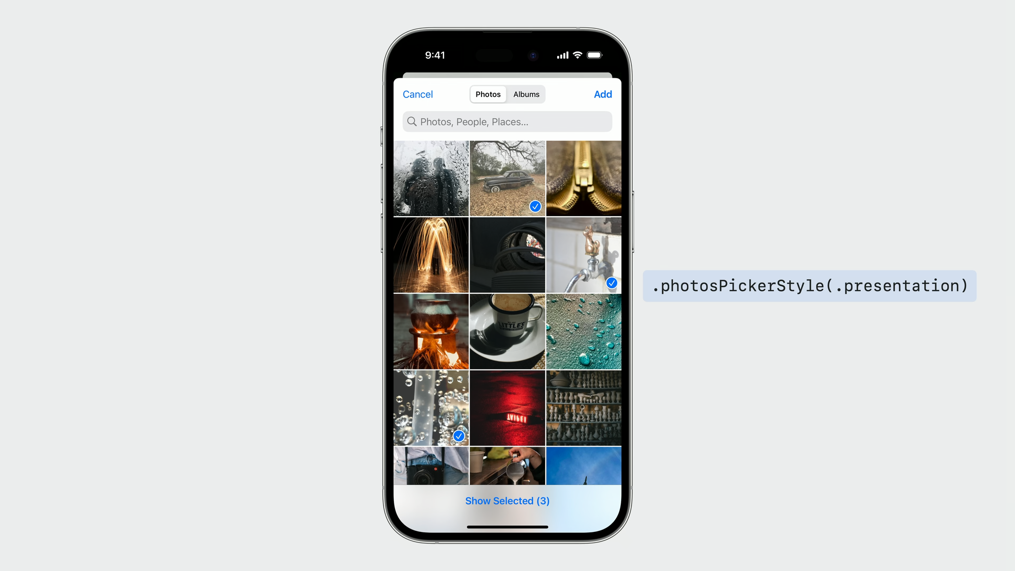 .photosPicker(isPresented: $shouldShowPicker, selection: $selectedItems, matching: .images)