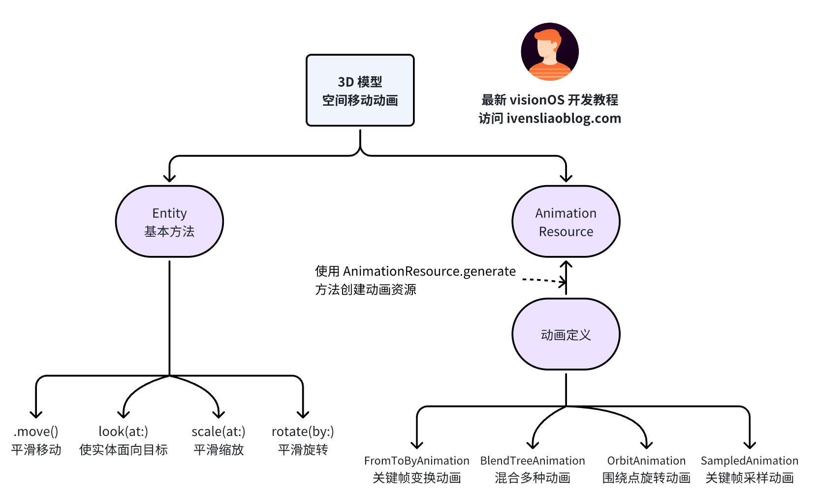 RealityKit 提供了多种动画类型,包括 FromToByAnimation、BlendTreeAnimation、OrbitAnimation和 SampledAnimation 。