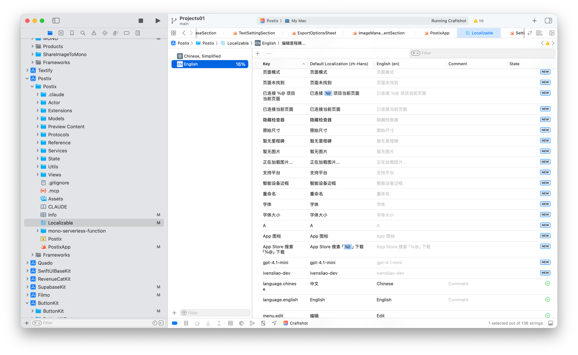 至少 Build 一次项目,确保让 Xcode 自动扫描并提取所有可本地化字符串,并自动添加到 String Catalog。