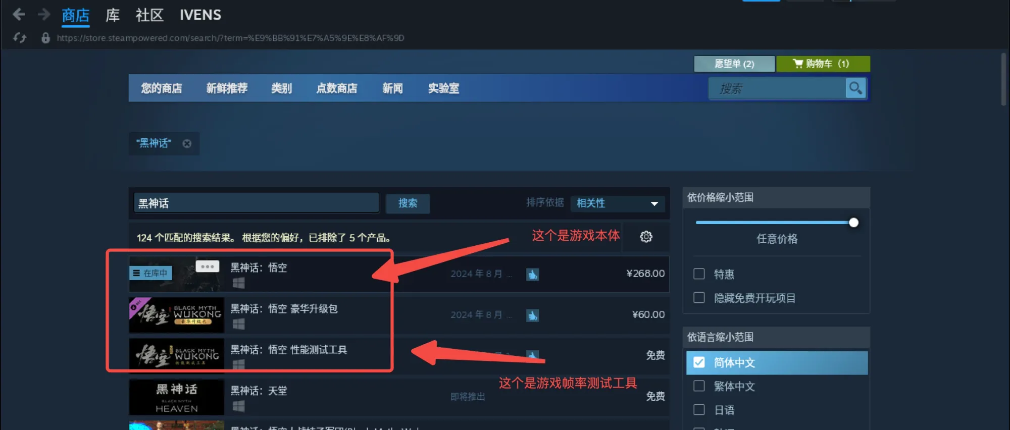 点击第一个,然后进入详情页面购买 -> 下载游戏即可: