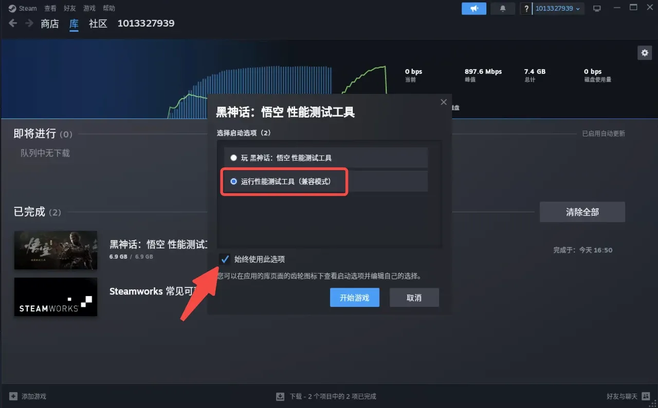 启动黑神话悟空时,请务必选择「兼容模式」,建议候选始终使用此选项。