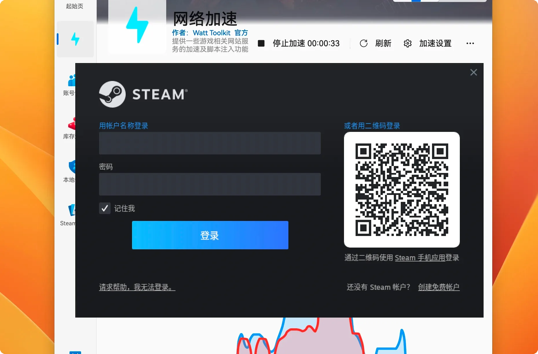 然后再次点击「一键加速」,重启 Steam 后测试是否能加载右侧的二维码?