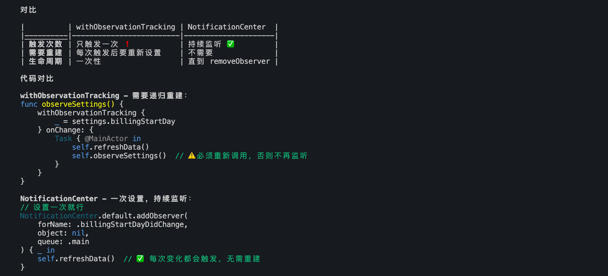 方式 2:withObservationTracking(iOS 17+)
