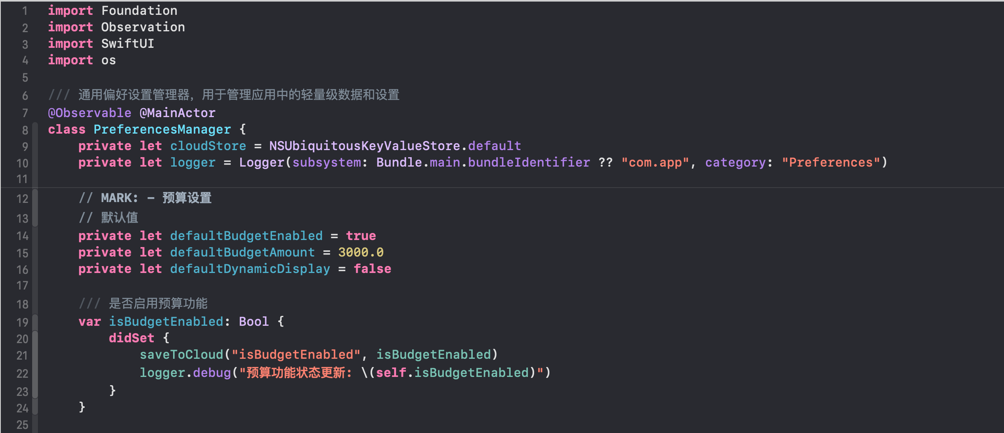 例如,创建一个 PreferencesManager 文件,在这个文件中可以更加统一的处理日志打印、默认值、设置通知监听等: