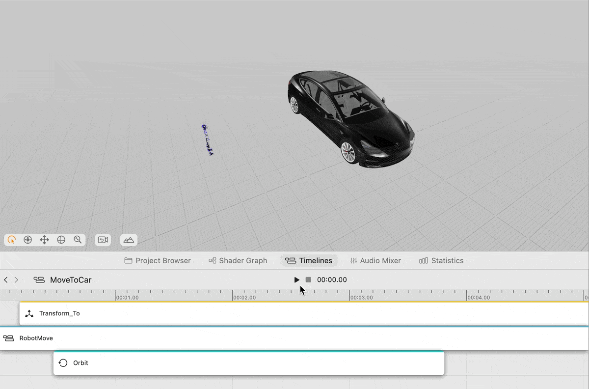 例如,假设你想实现一个机器人🤖向目标地点移动,同时执行自身的身体动画。可以创建两个 Timeline: