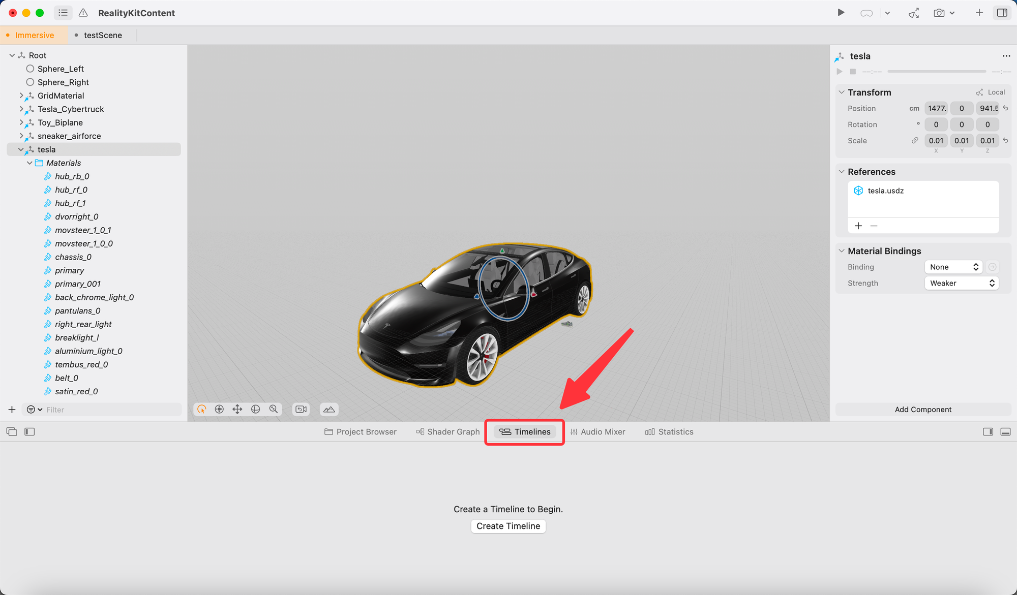 在 WWDC24 上,苹果发布了 Xcode 15 更新,Reality Composer Pro 也获得了一项新功能——Timelines。这个功能可以为你的 3D 模型添加动画效果,使得在专业版本中实现动画变得更加方便和强大。