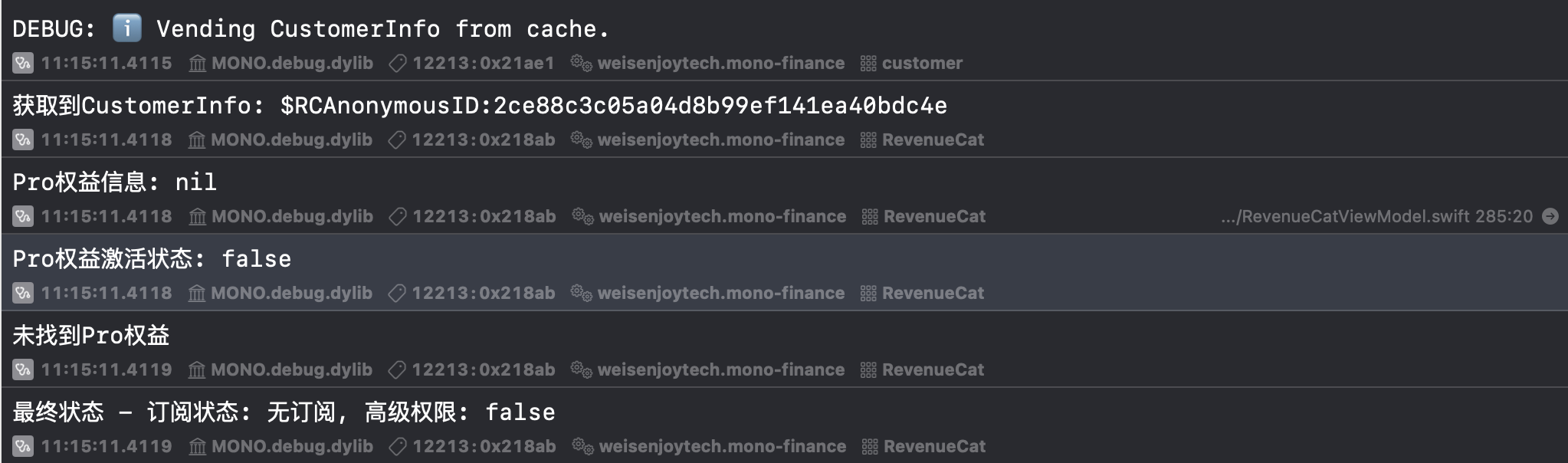 重新运行至少一次之后,在 RevenueCat 平台点击这条 Sandbox 数据,可以重新查看详情,同时权益已被删除 —— 这正是我们需要的效果: