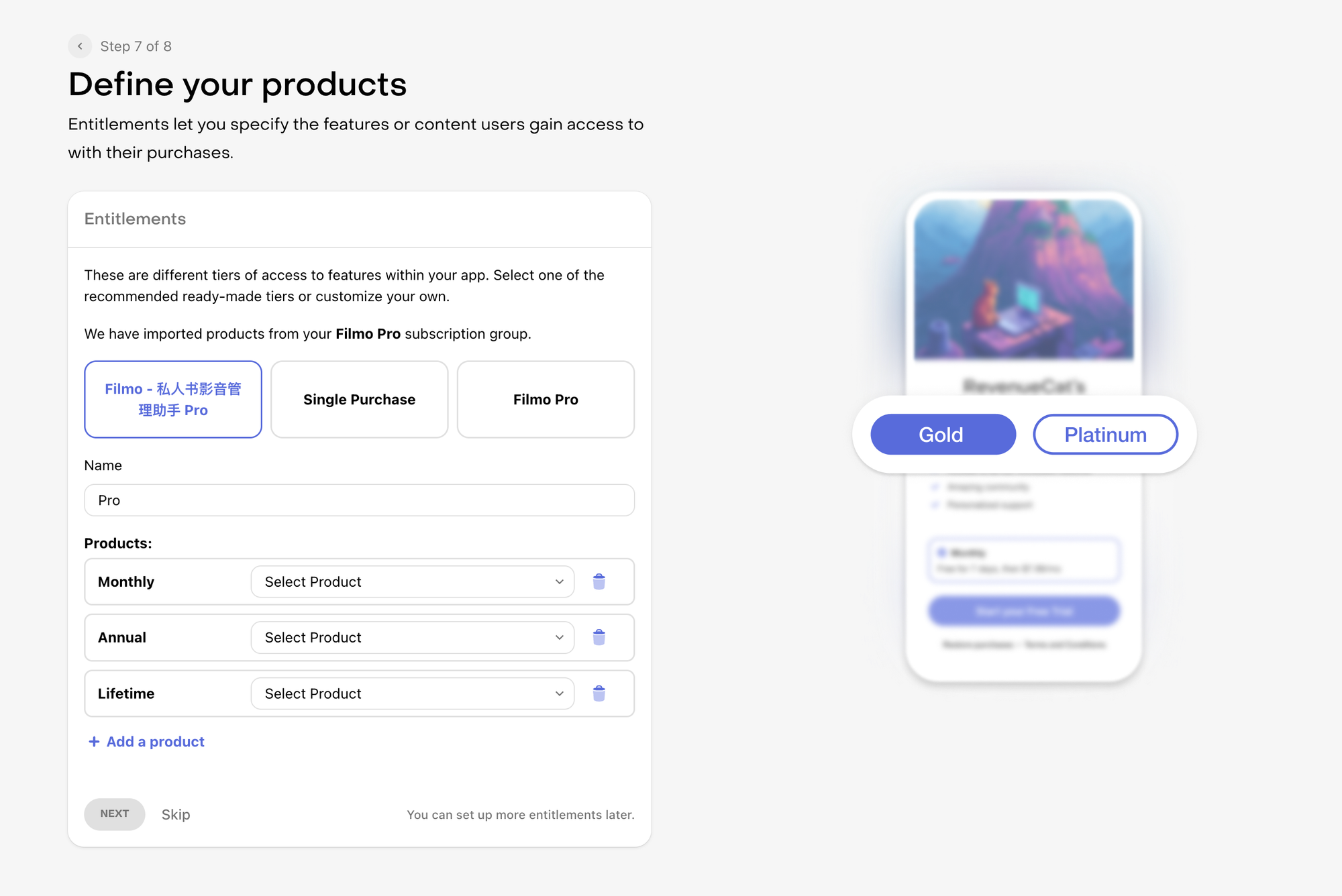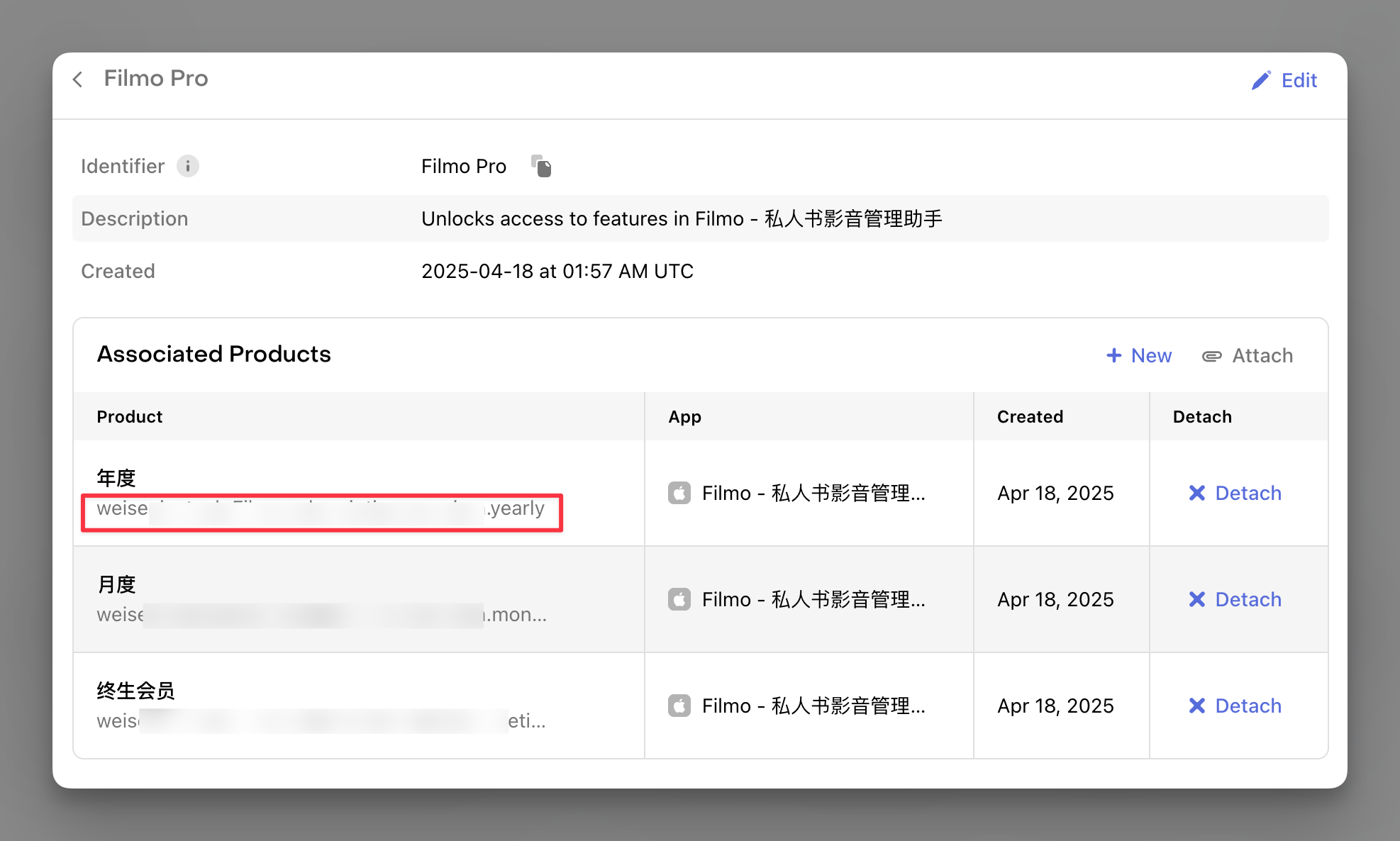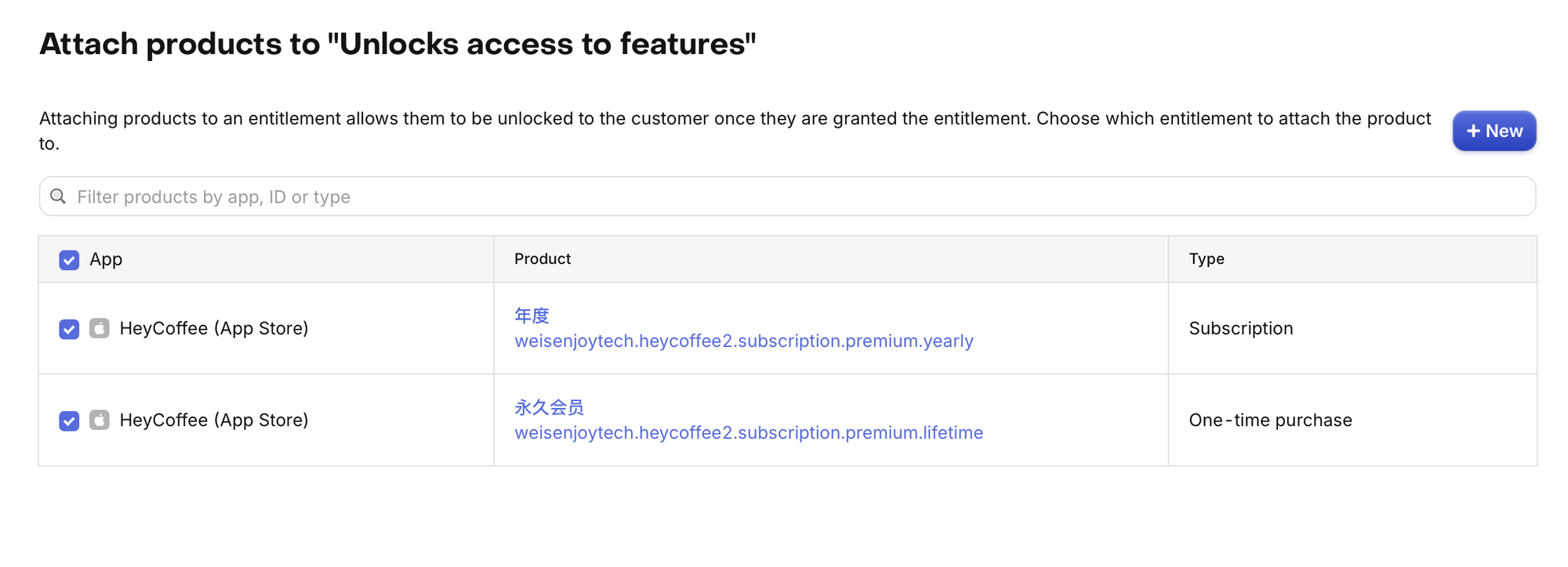 一个订阅群组中,可能有多个订阅产品。同样的,RevenueCat 的一个 权益中,也可以有多个 Product。