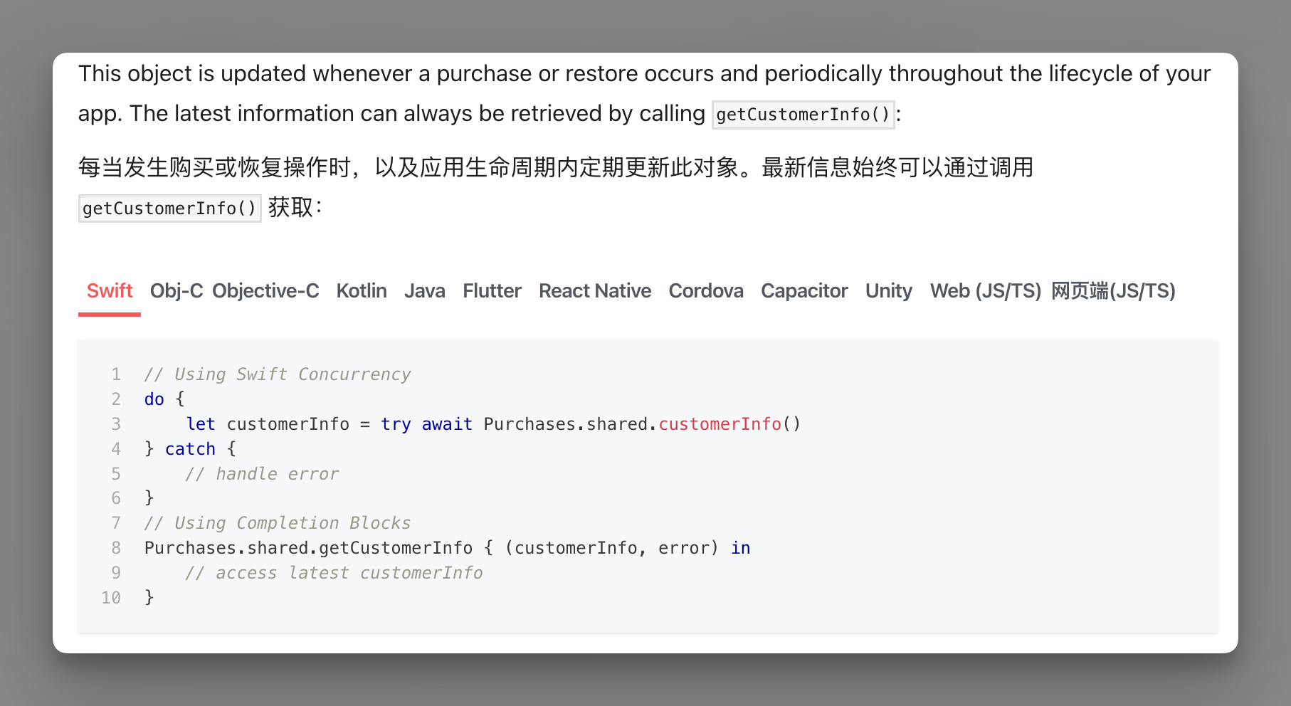 如果有多个权益,可以查看更详细的文档:https://www.revenuecat.com/docs/customers/customer-info#checking-if-a-user-is-subscribed