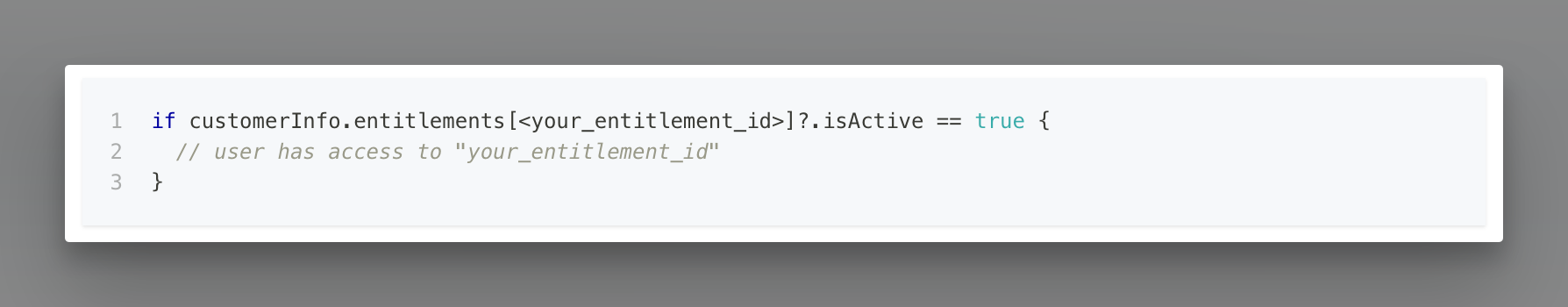 通过获取 CustomerInfo 中的 entitlements,可以判断用户当前是否拥有某个权益。