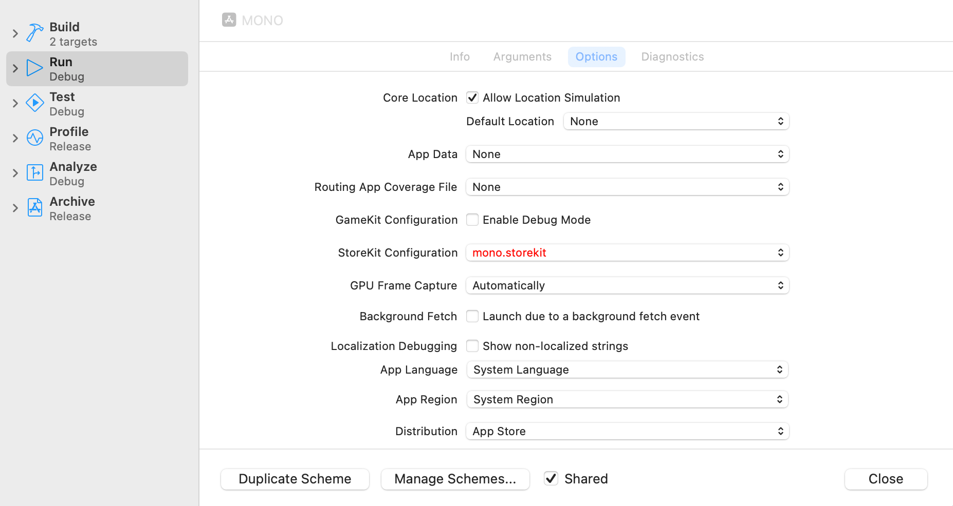 进过排查,是因为在模拟器中,必须在 Schema 中配置 StoreKit 配置文件,并且需要确保不会出现下面这个红色(说明配置或路径存在问题):