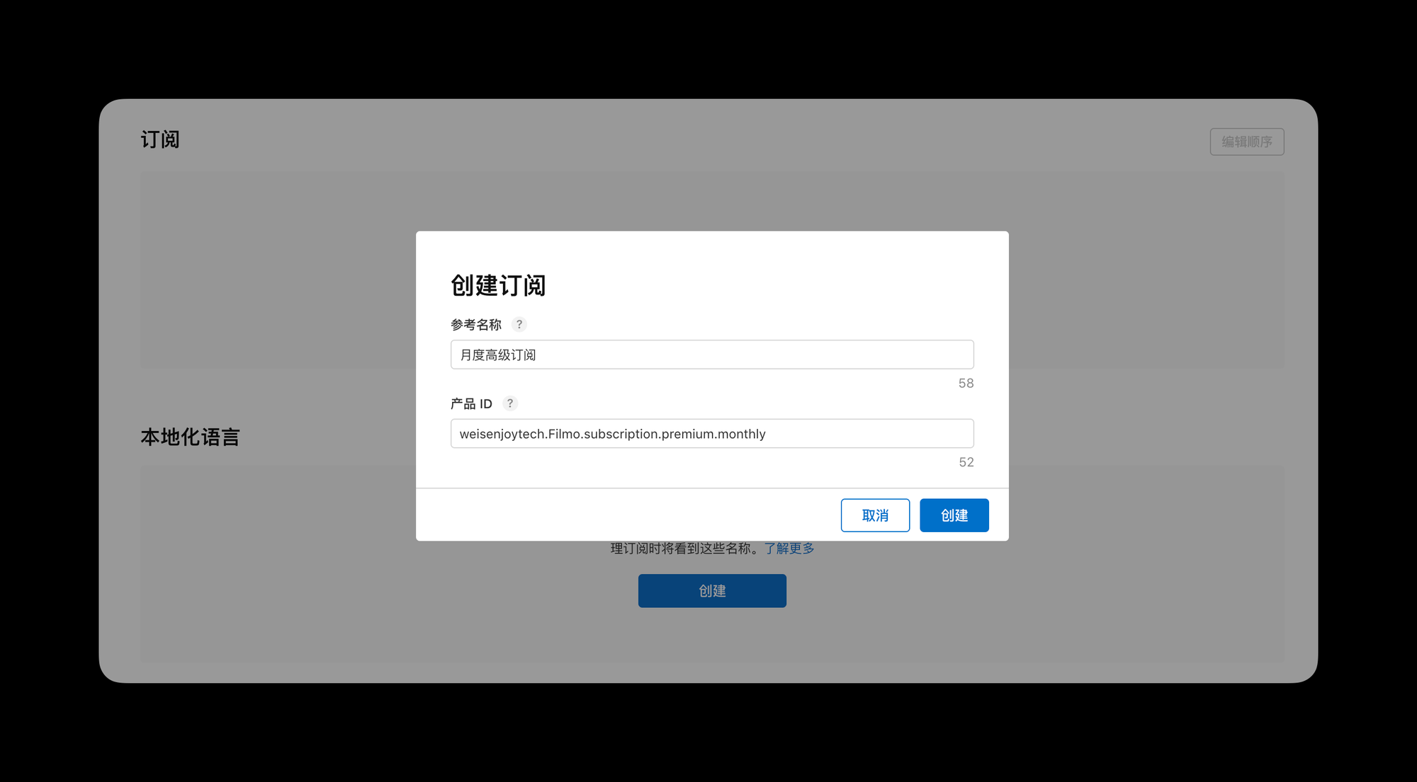 - 参考名称:这是订阅产品的内部名称,仅供开发团队使用