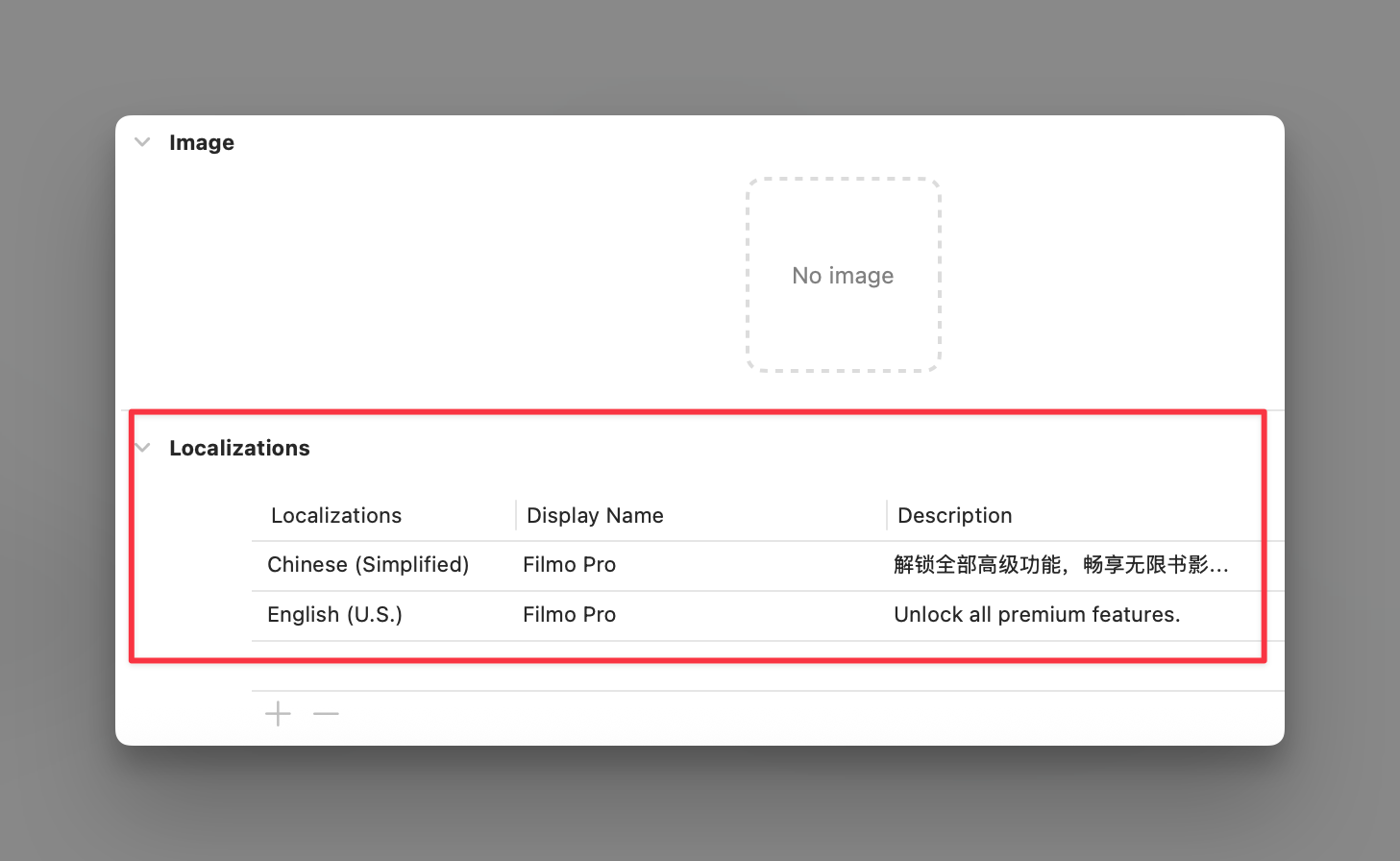 在 StoreKit 配置文件中,可以看到 Localizations 选项: