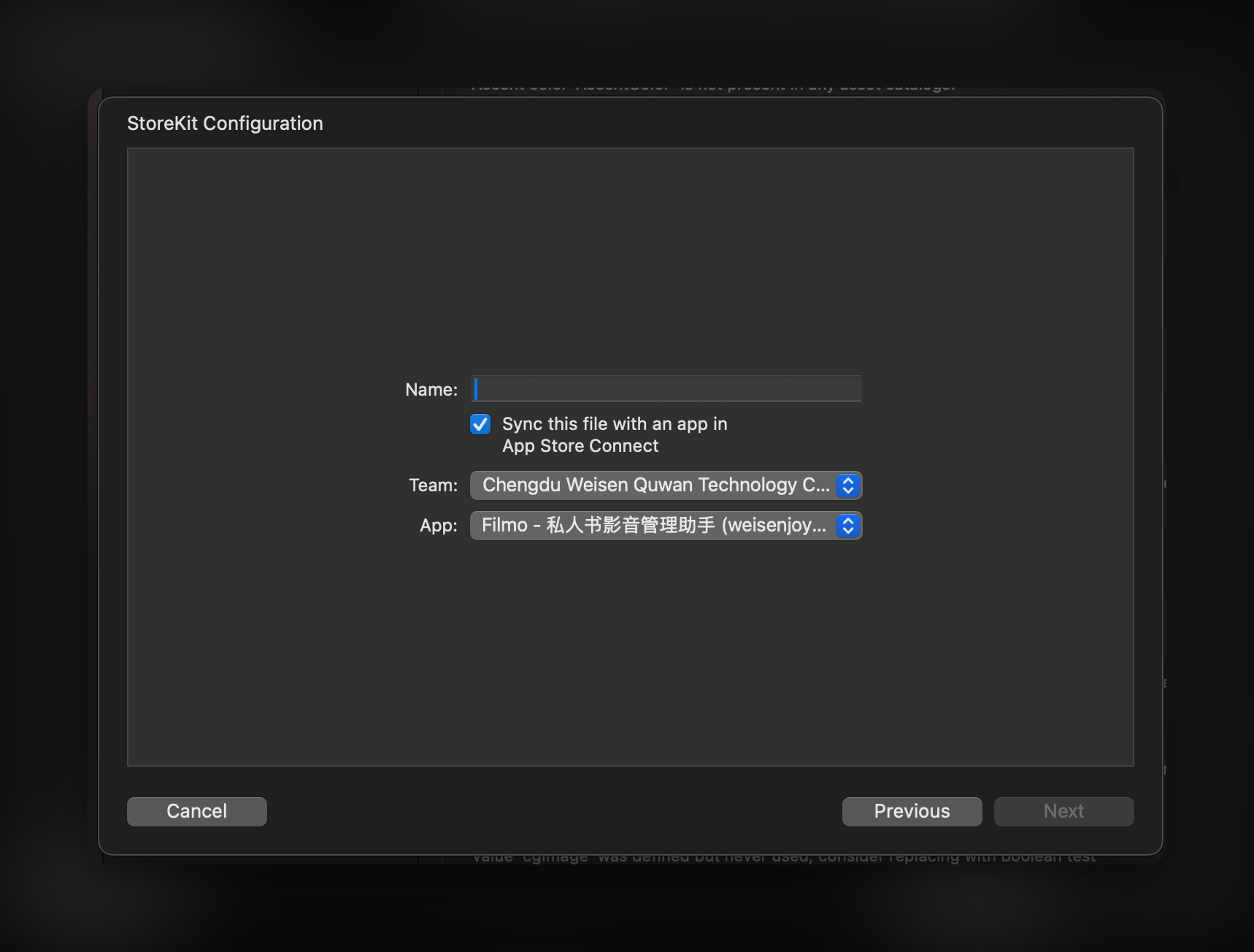 勾选后,可以选择一个在 App Store Connect 上已经注册的 App。