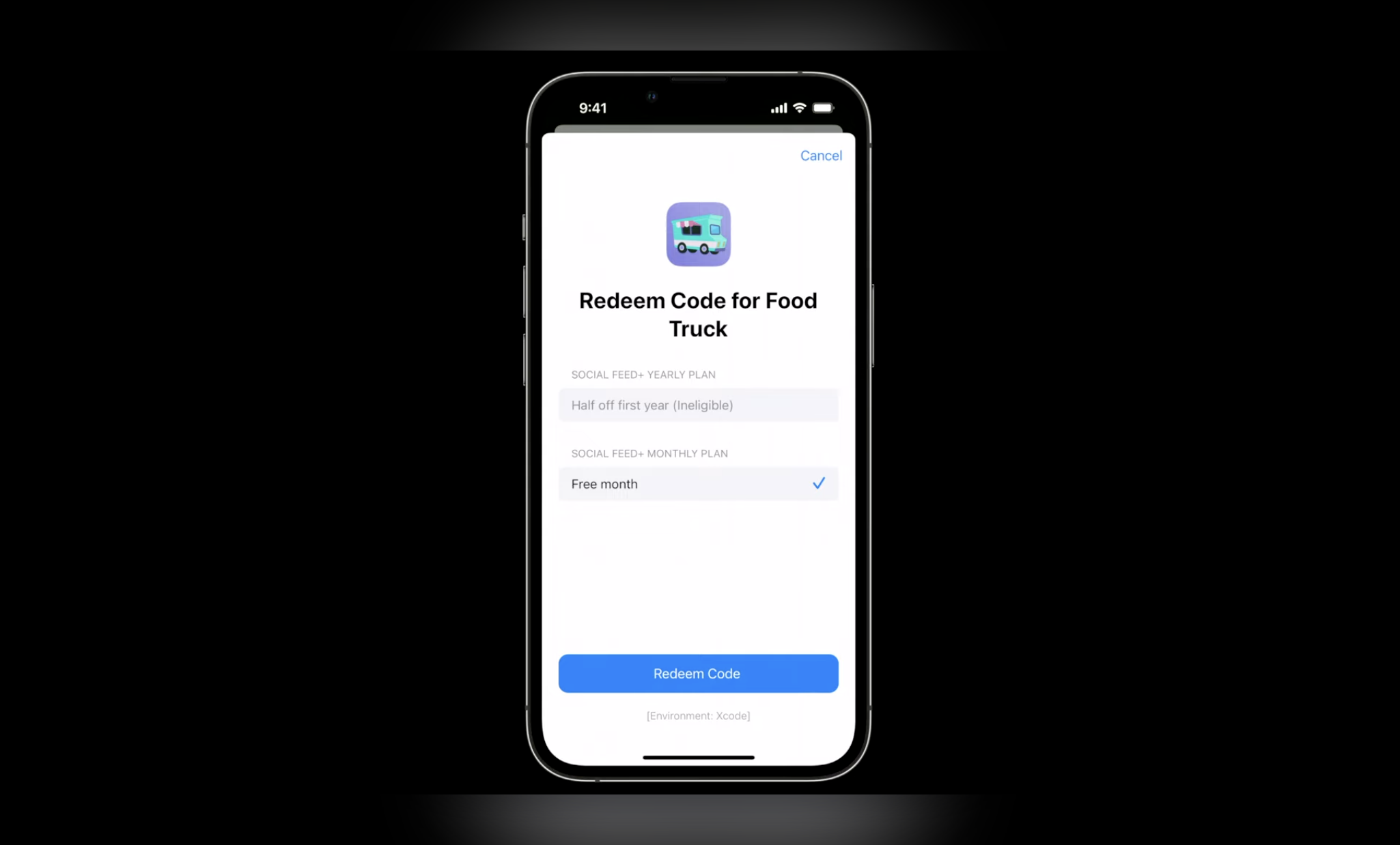 通过使用 .offerCodeRedemption(isPresented:onCompletion:) 修饰器,可以打开一个优惠代码兑换页面(由系统创建)。