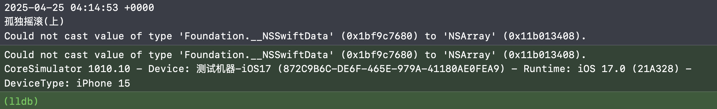 Could not cast value of type 'Foundation.__NSSwiftData' (0x1bf9c7680) to 'NSArray' (0x11b013408).