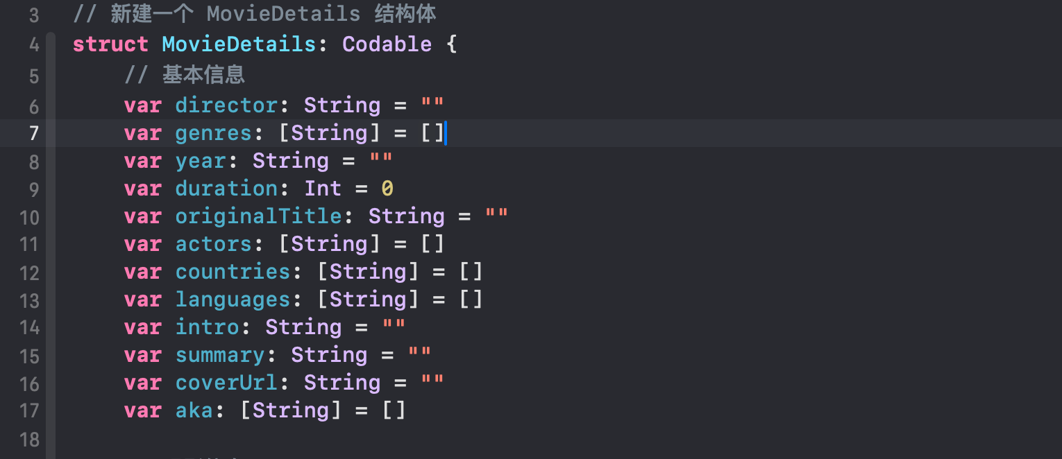 [String] 的问题存疑,因为在我后续的使用中,发现在 MovieDetails 结构体的多个属性仍然使用 [String],但未出现 App 崩溃的情况。