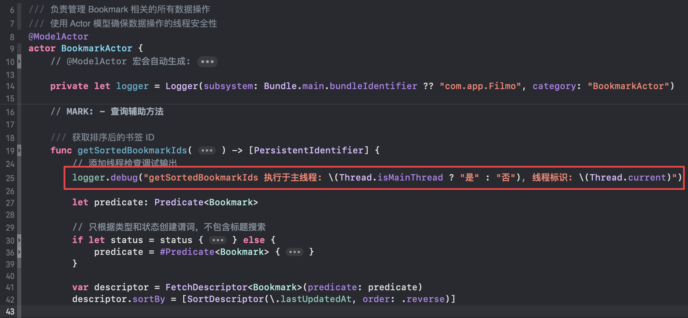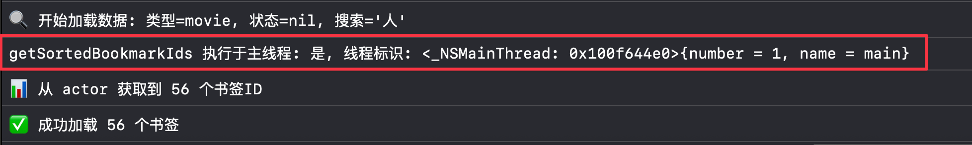 在 Filmo 项目中,我创建了一个 BookmarkActor,并使用 logger 检查执行所在的线程: