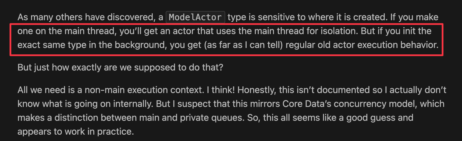 - 如果在主线程上创建 ModelActor 实例,你会得到一个使用主线程进行隔离的
