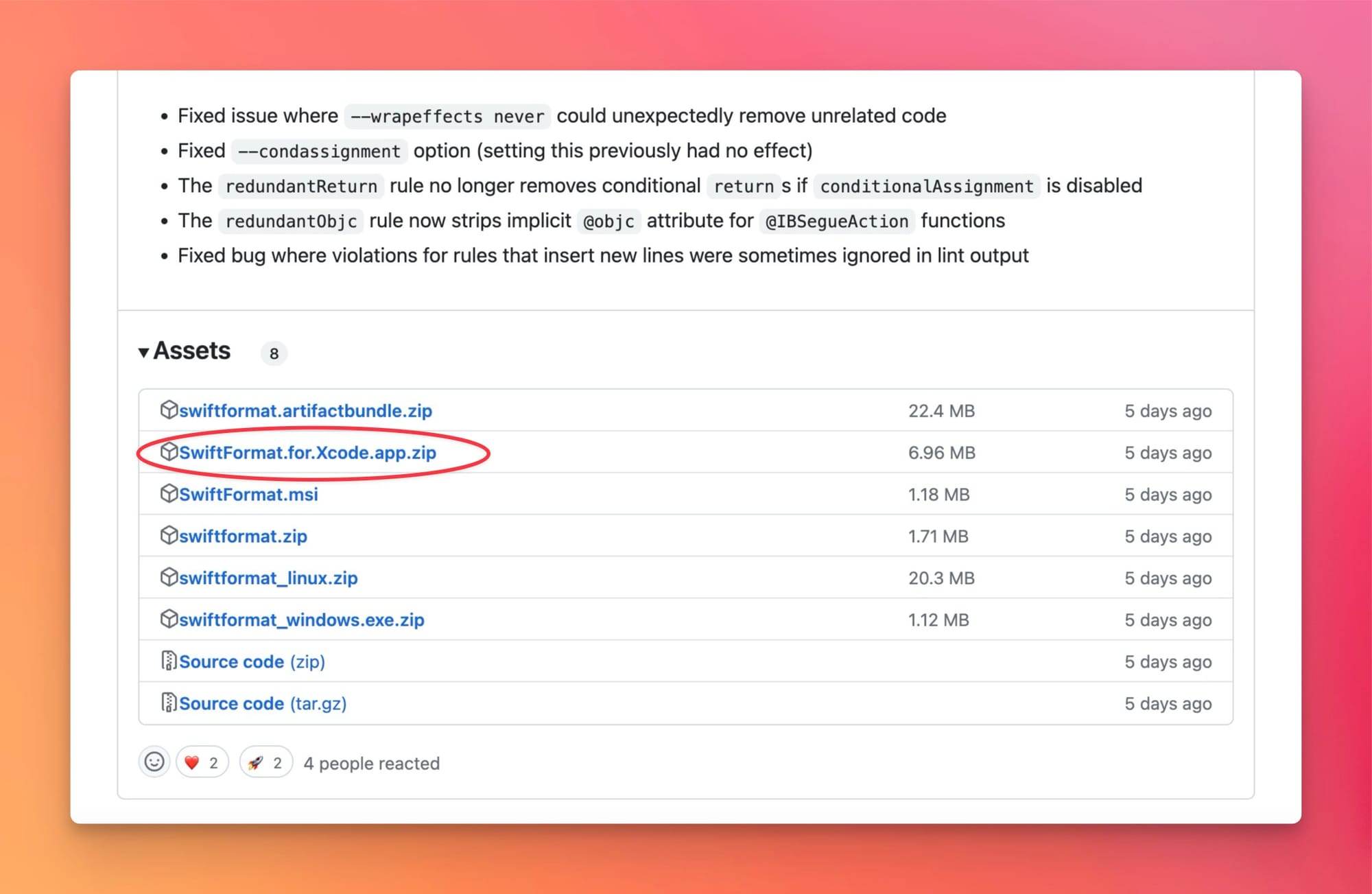 安装 SwiftFormat 的最简单方法,是从最新的 GitHub 中下载 SwiftFormat.for.Xcode.app.zip 解压后安装。