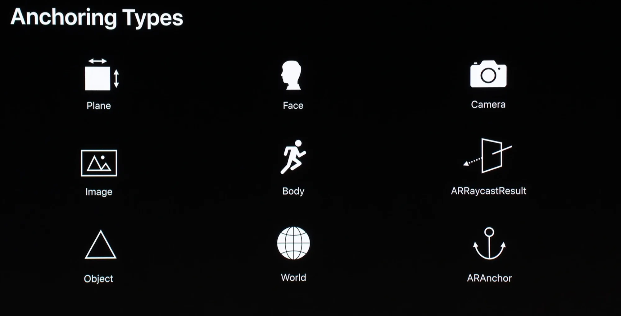 AnchorEntity 支持多种锚点,目前支持以下几种锚点类型: